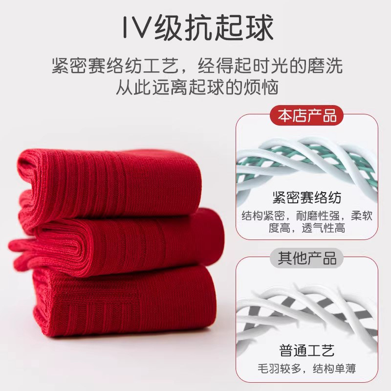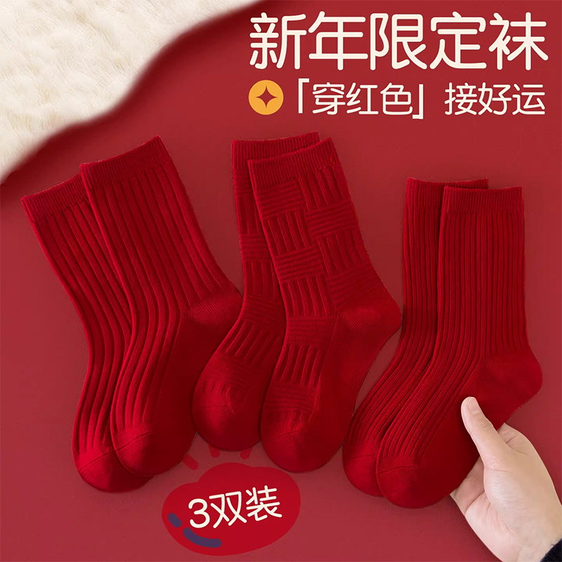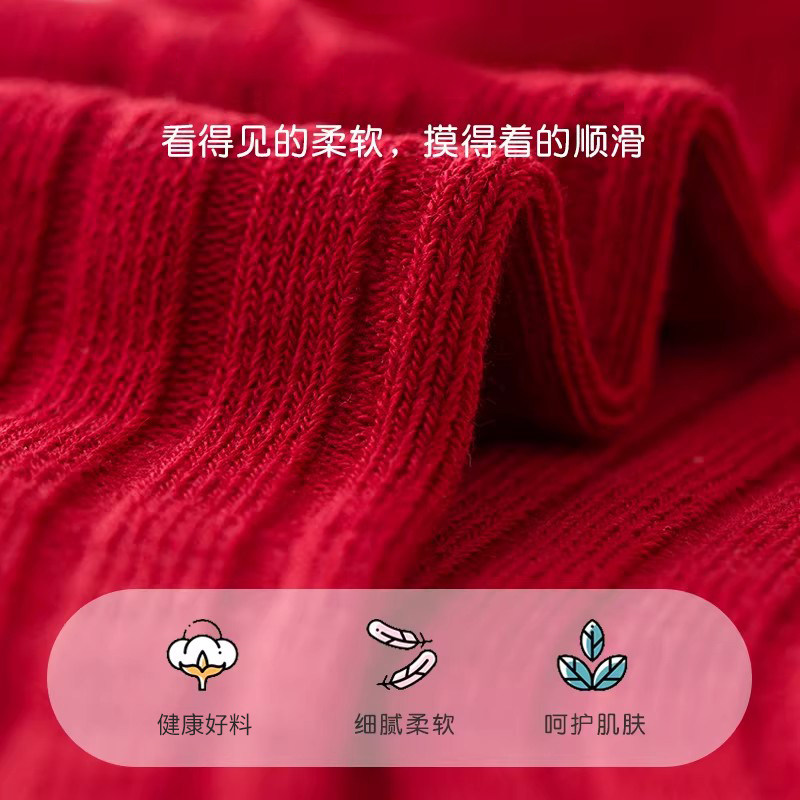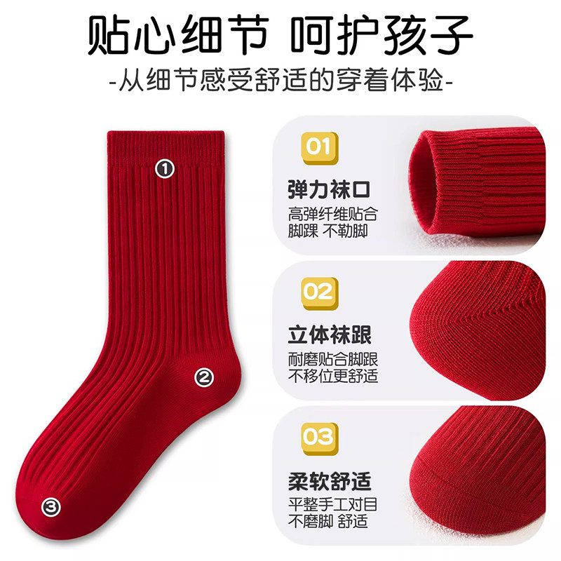 儿童袜子中筒袜女童男童新年本命年马年纯色红色抗起球过年冬季