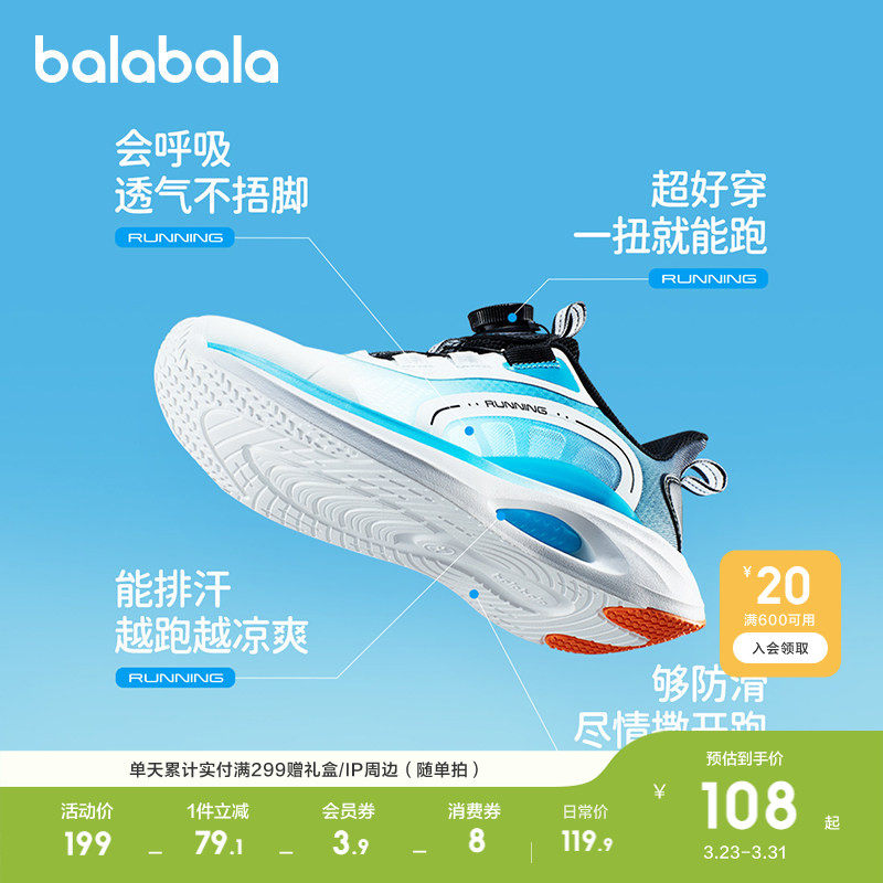 巴拉巴拉童鞋儿童运动鞋秋季跑步鞋男童鞋子轻透气校园旋转扣网鞋