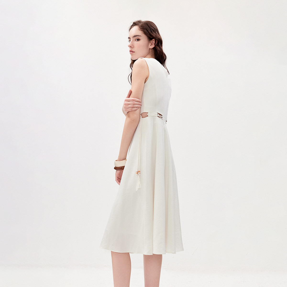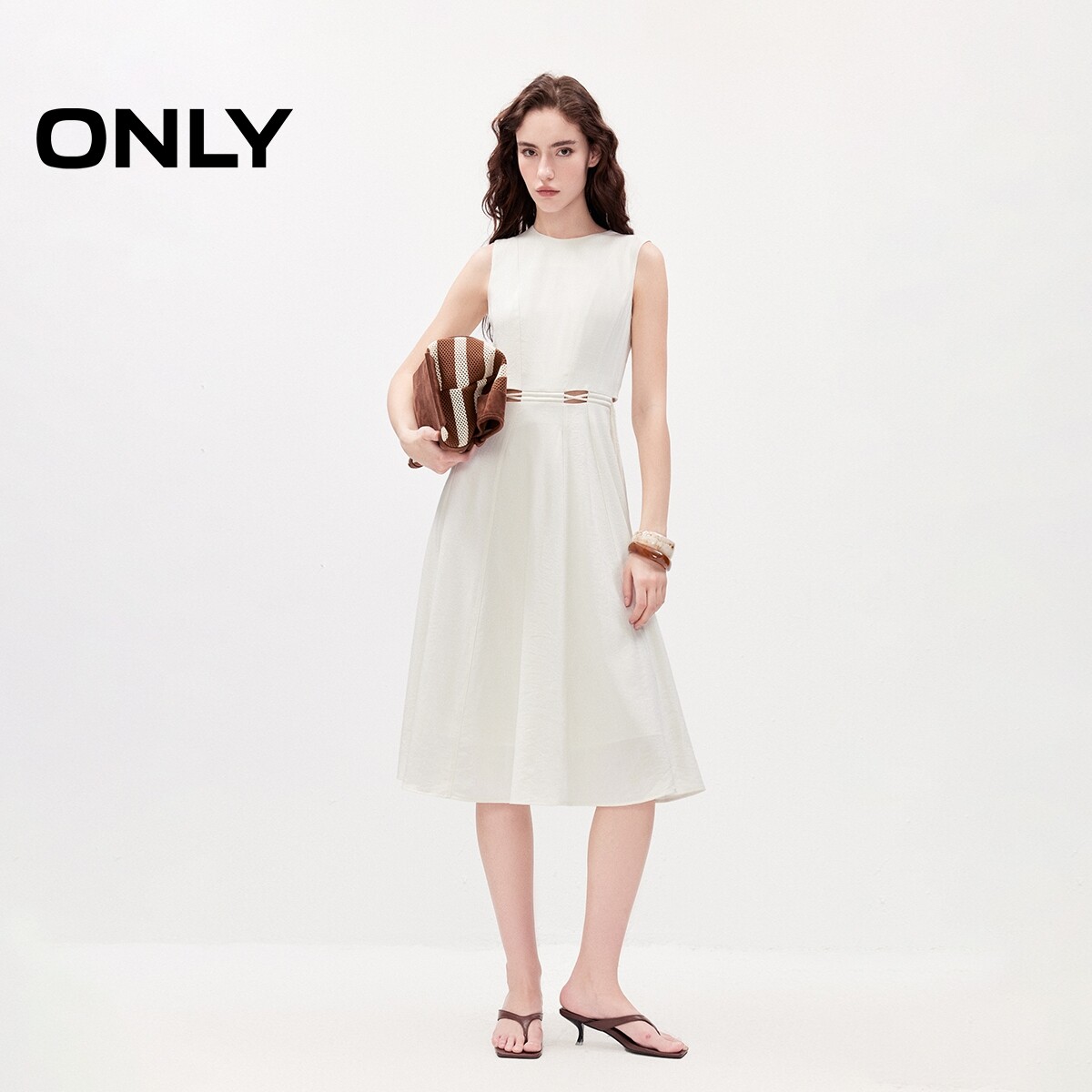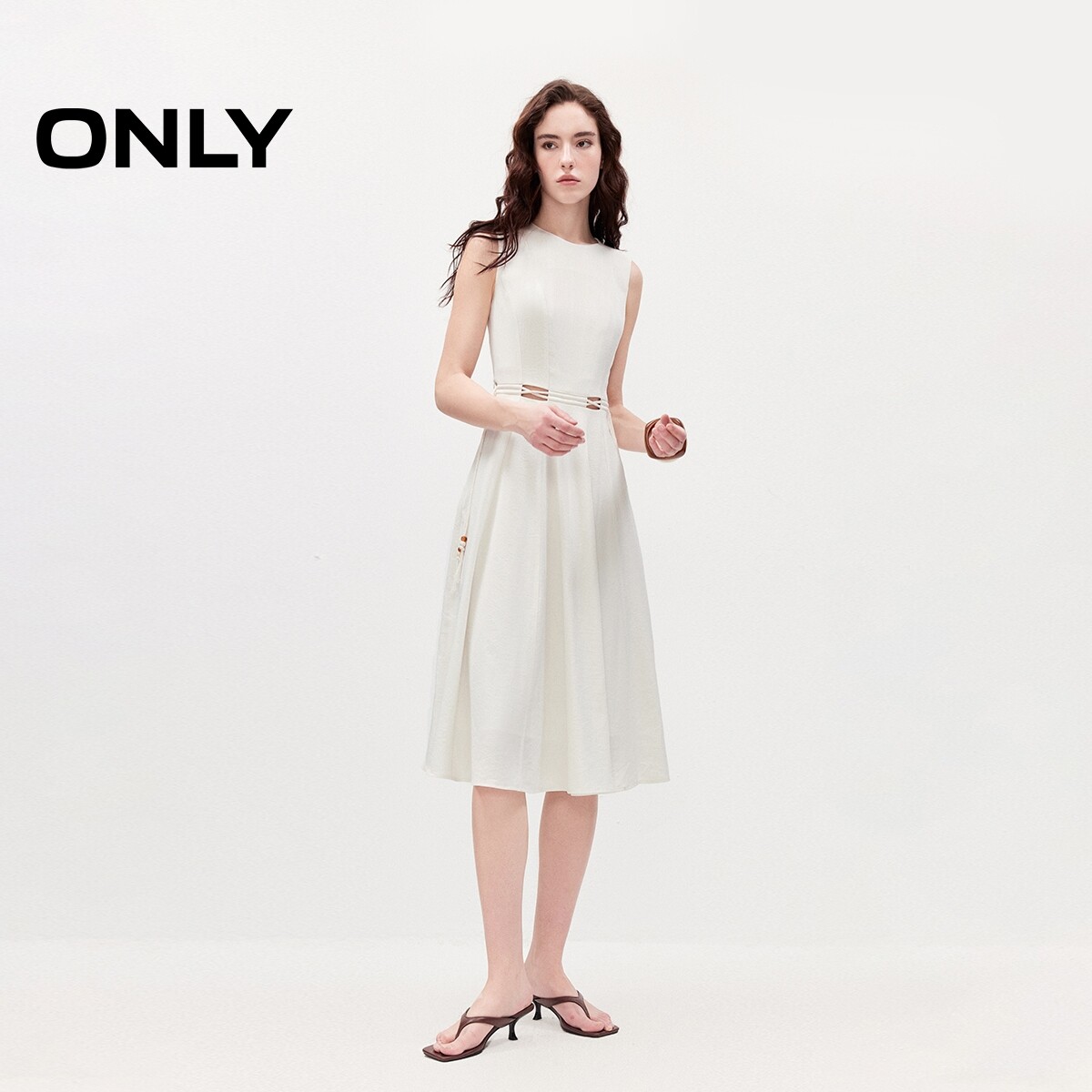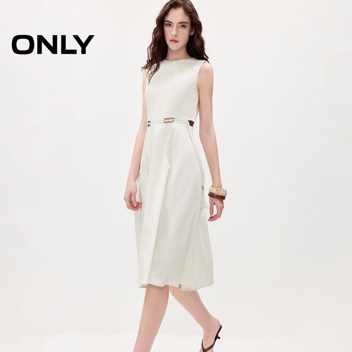 ONLY2026夏季新款简约摩登腰部镂空裙子圆领无袖长裙连衣裙女