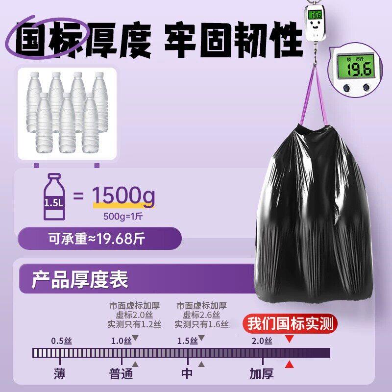 佳帮手垃圾袋加厚家用手提式黑色抽绳厨房用大号特厚实惠装塑料袋