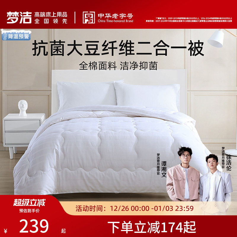 洁丽雅亲肤大豆纤维被春秋被夏凉被子秋冬被学生宿舍保暖被芯四季