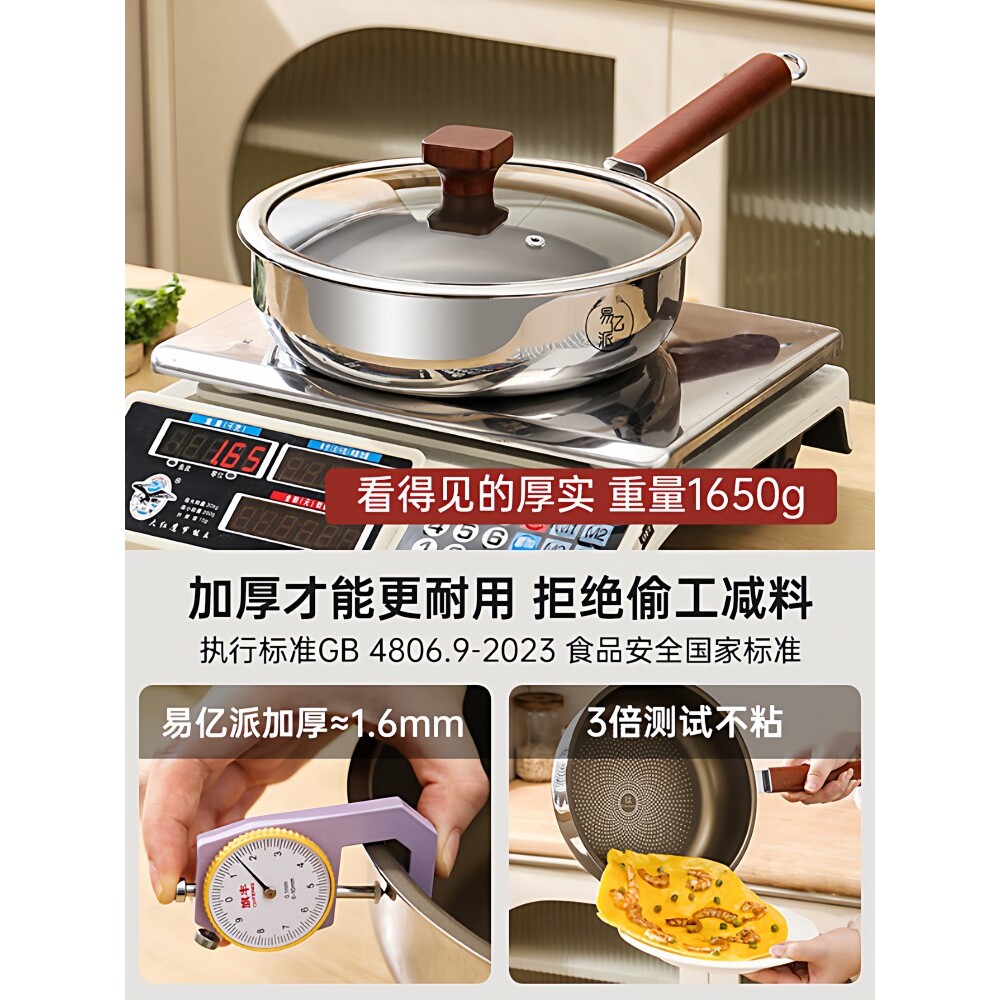 不锈钢胡桃木手柄平底锅宝宝辅食锅热油锅食品级多功能汤锅炒菜锅
