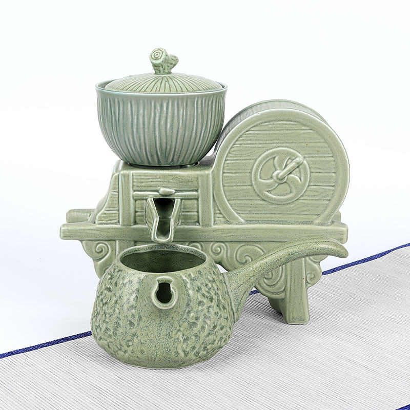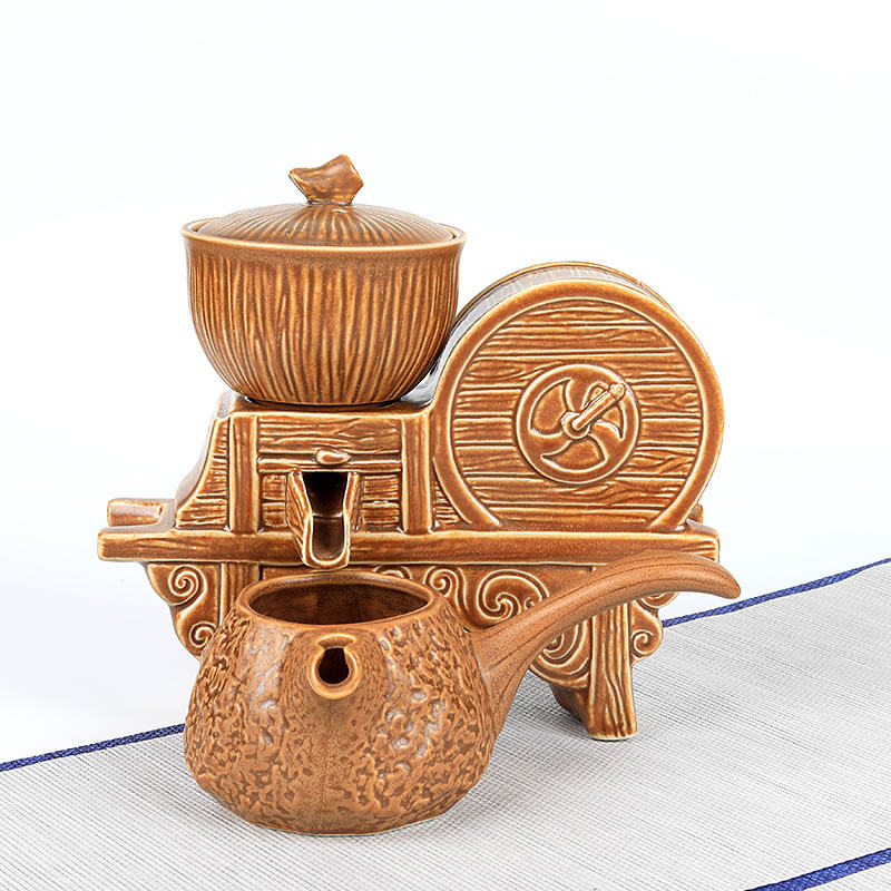 懒人石磨茶具套装家用防烫旋转自动过滤功夫茶杯泡茶壶盖茶海
