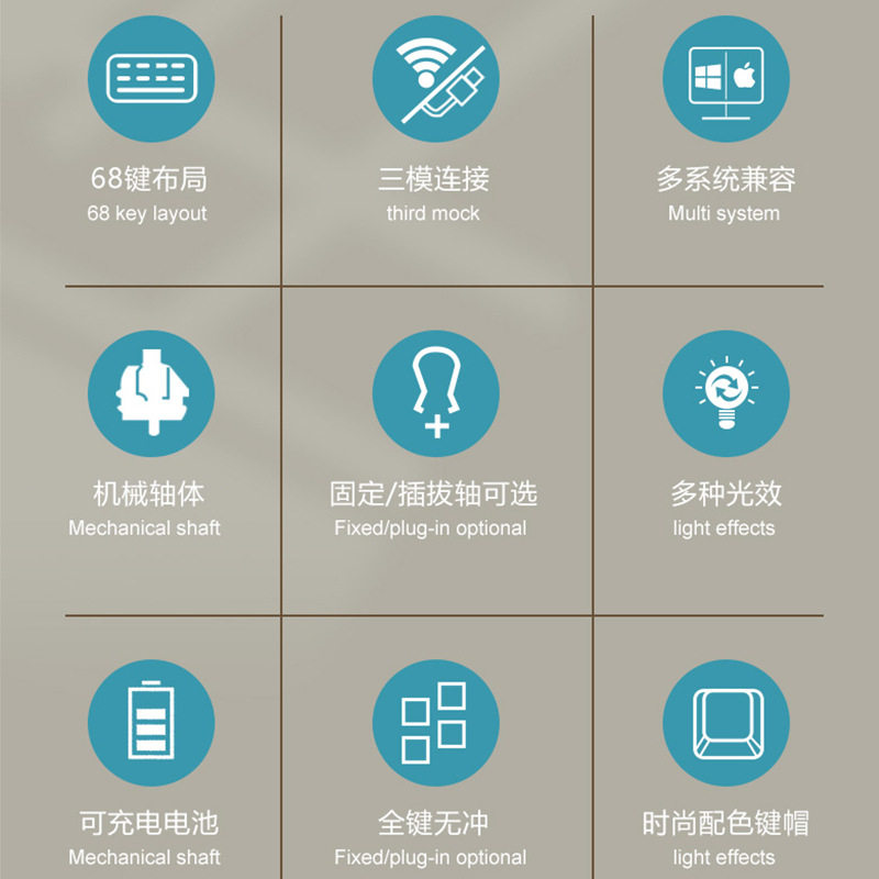 68键无线蓝牙三模机械键盘青茶红轴游戏电竞公迷你小型便携套件