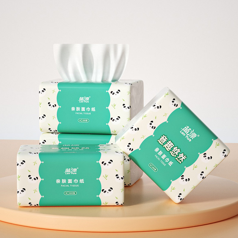 蓝漂亲肤面巾纸300张加大加厚1包2包便携装抽纸独立包装生活用纸