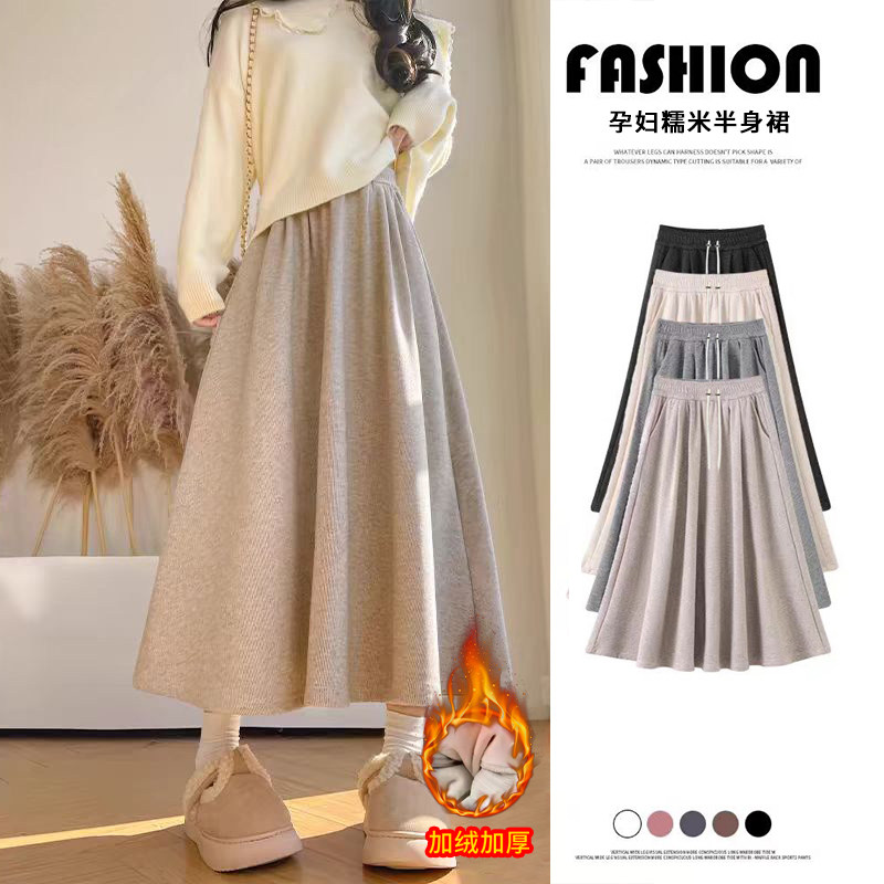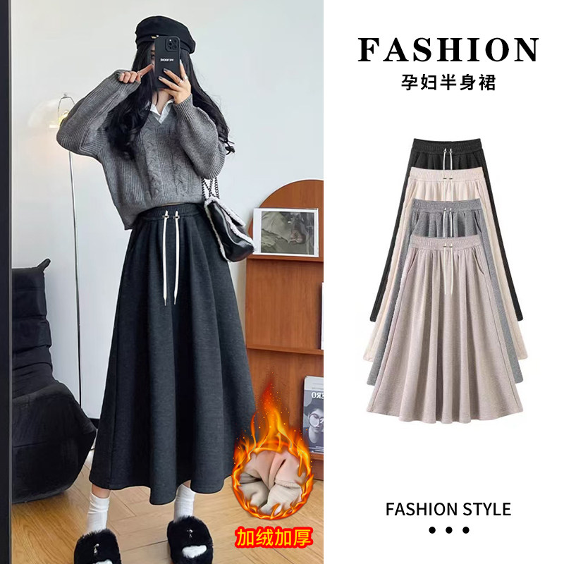 婧麒孕妇装无托腹抽绳孕妇裙子孕期时尚高级洋气孕妇半身裙秋冬装