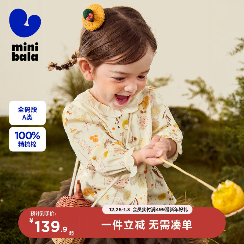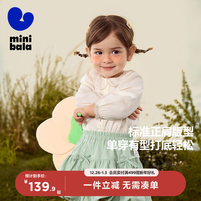 迷你巴拉巴拉女童长袖衬衫2025秋新品甜美法式纯棉翻领儿童上衣