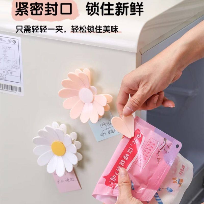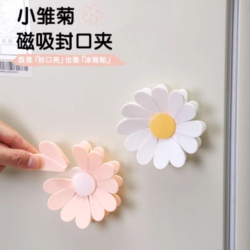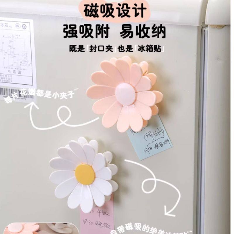 磁吸小雏菊封口夹零食密封夹个性花瓣创意立体式冰箱贴食品袋夹子