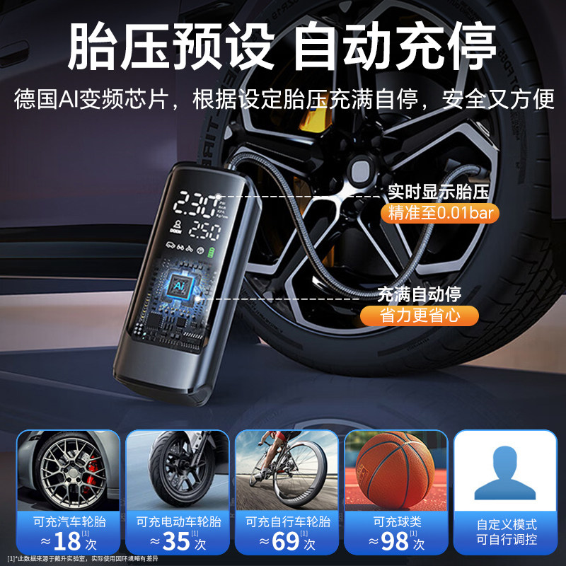 车载充气泵便携式汽车用电动打气筒氮气轮胎带测胎压小型自动加气
