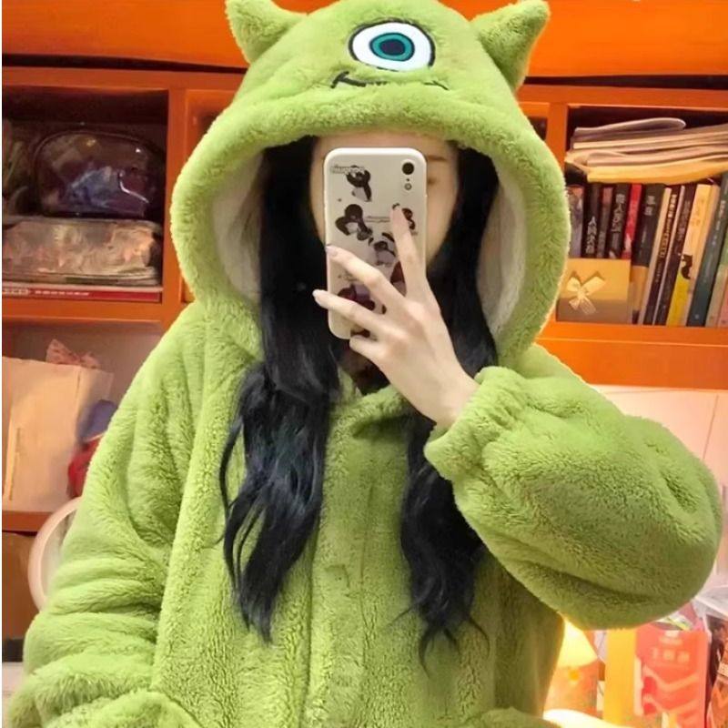 大眼仔珊瑚绒睡衣女秋冬季睡袍加厚长款毛绒保暖睡裙卡通可爱套装