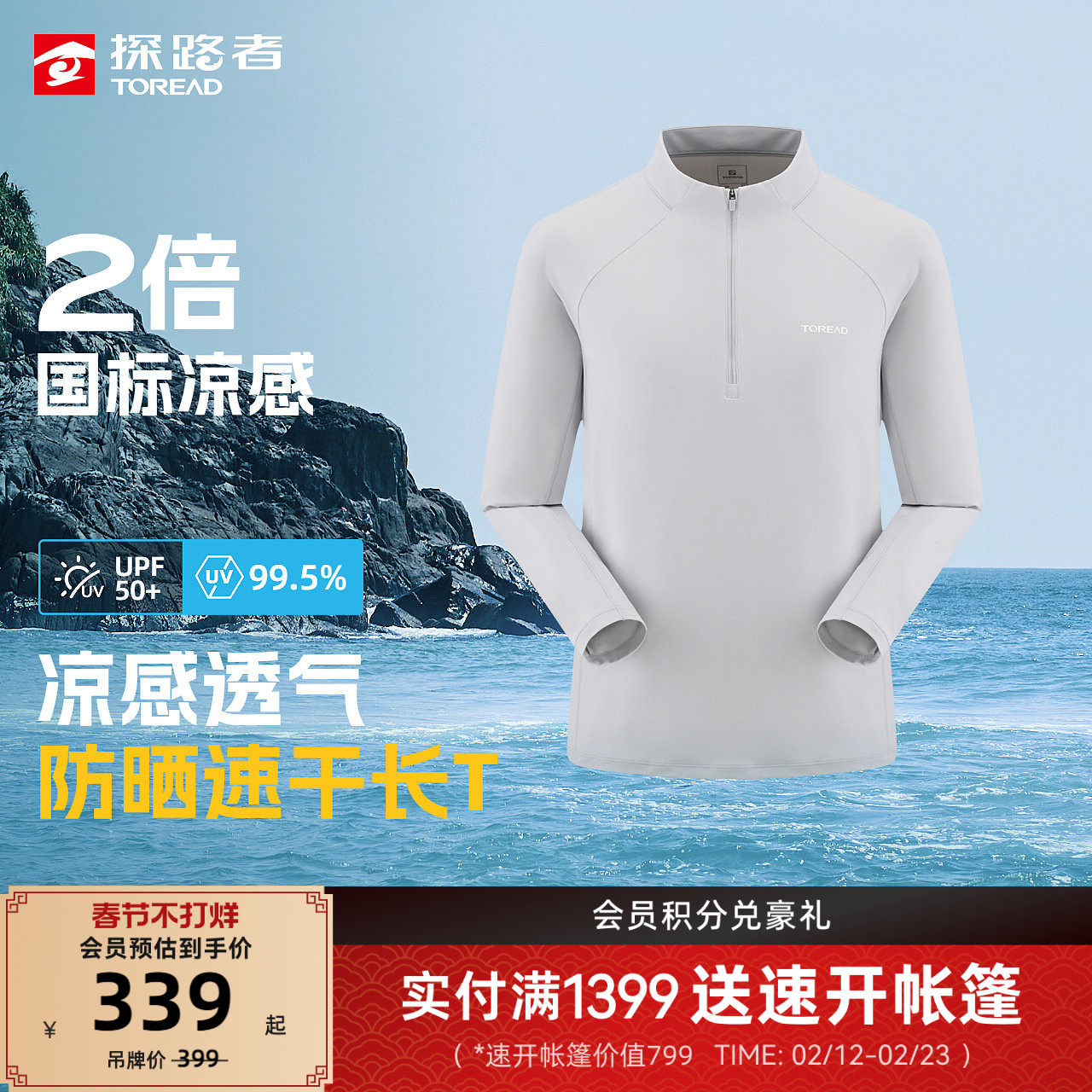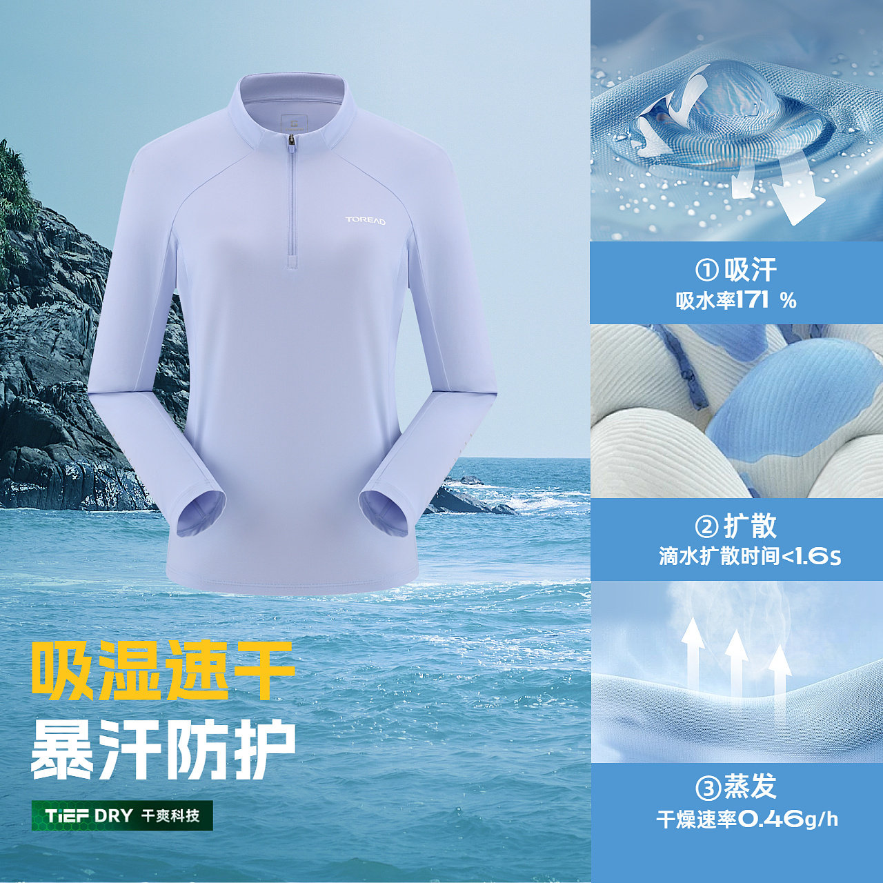 探路者男式功能长T凉感速干透气UPF50+防晒户外徒步运动长袖女