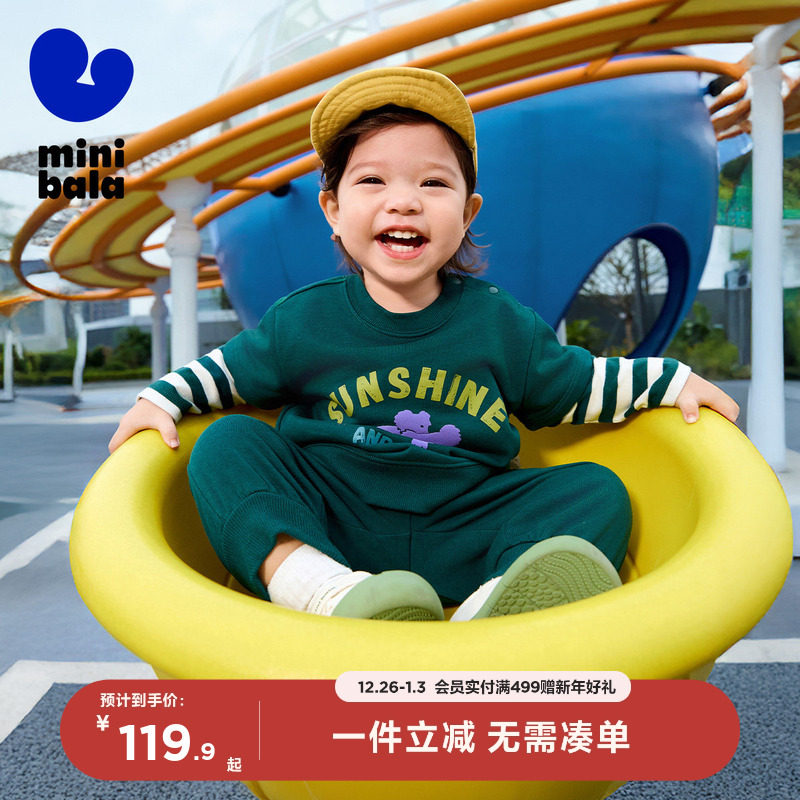 迷你巴拉巴拉长袖套装男童女童潮流萌趣假两件卫衣长裤两件套25秋