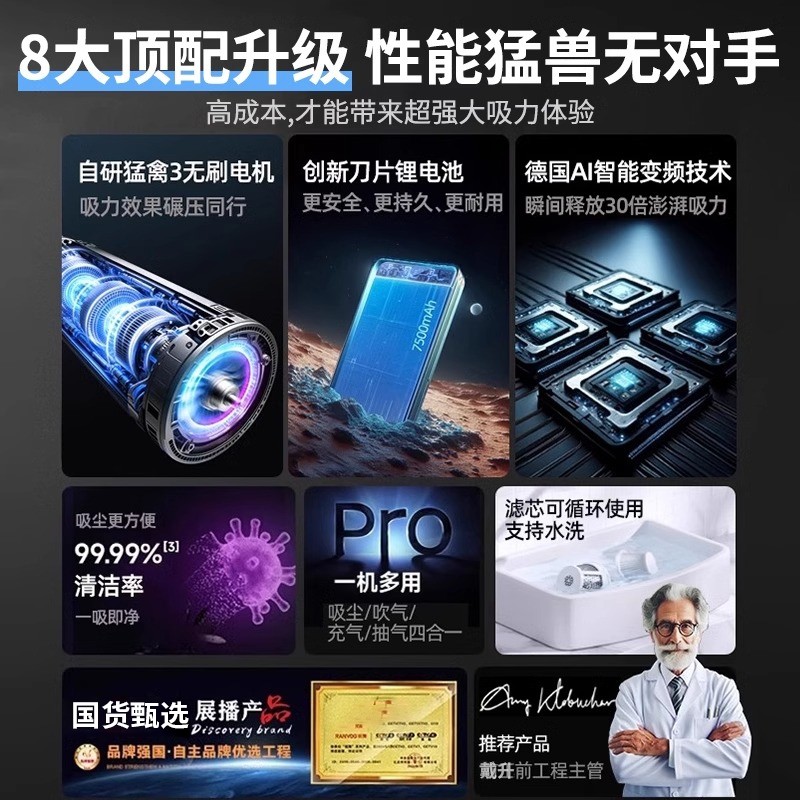 凌匠4合1车载无线吸尘器强力吸吹充抽汽车用家用小型机无刷大吸力