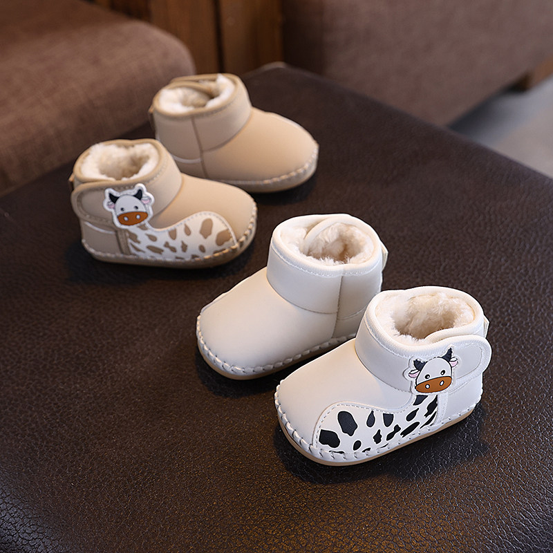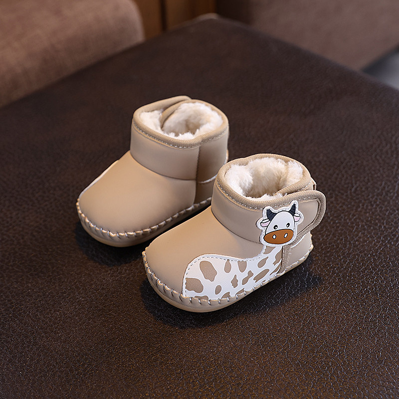 冬季新生婴儿0到1岁男女宝宝棉鞋加绒加厚保暖软底不掉步前雪地靴