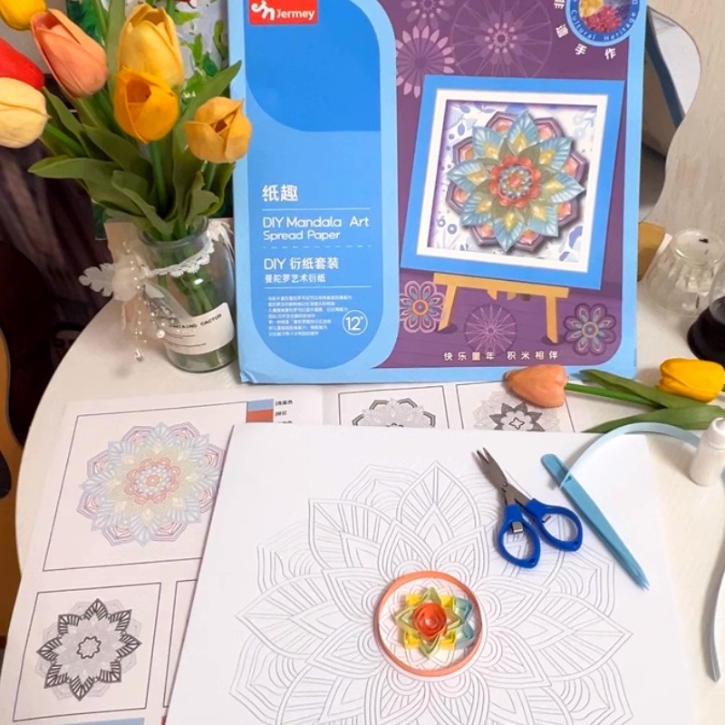 Jermey积米手工衍纸曼陀罗花工艺套装一套齐全易上手亲子游戏摆件diy材料包工具套装非遗手工全套作品