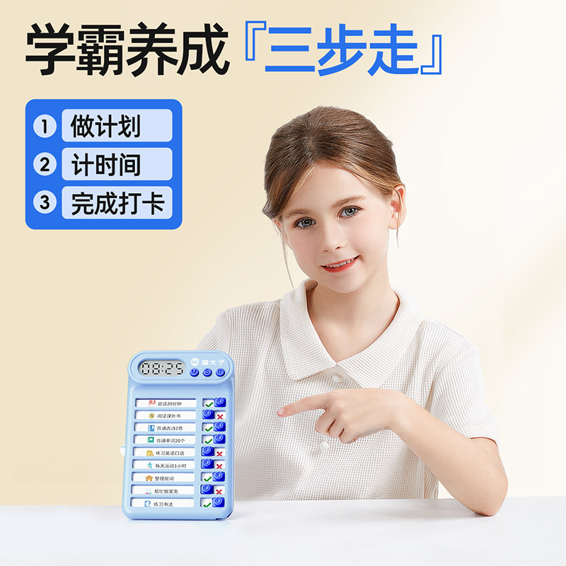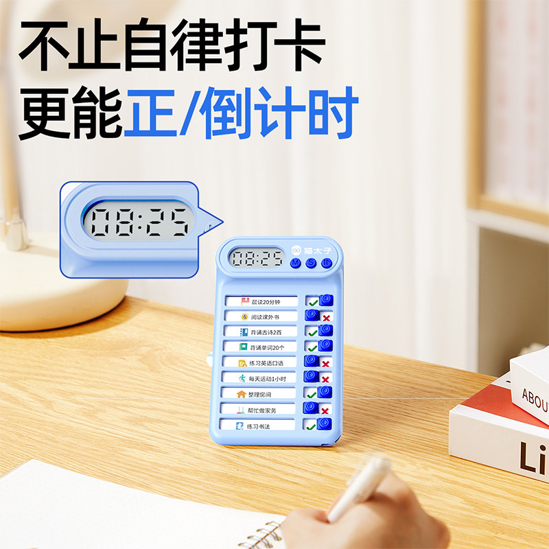 猫太子迷你小学生自律打卡器学习计划表课程表儿童学习自律神器时间管理器每日计划本打卡记录表学习寒假假期