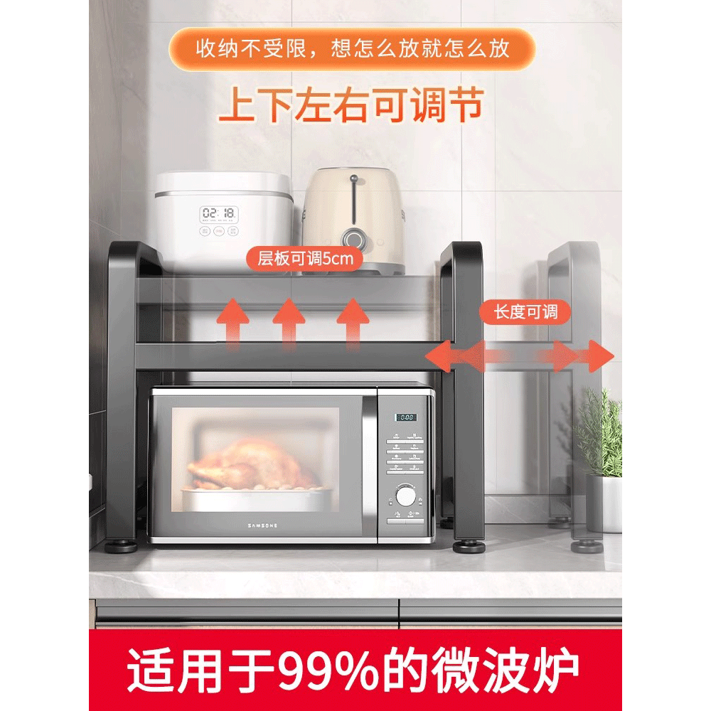 可伸缩厨房微波炉置物架多功能家用架子台面电饭锅烤箱收纳支架子