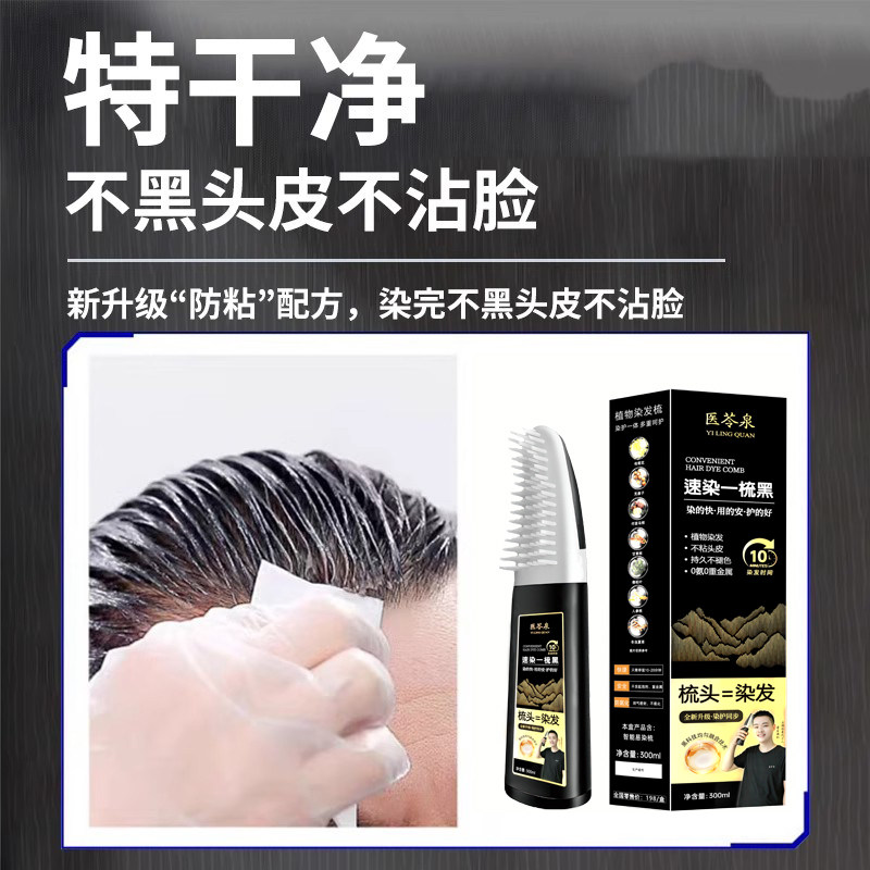 一梳子黑色男女专用植物染发剂染膏老年人遮白发纯不沾头皮同仁堂