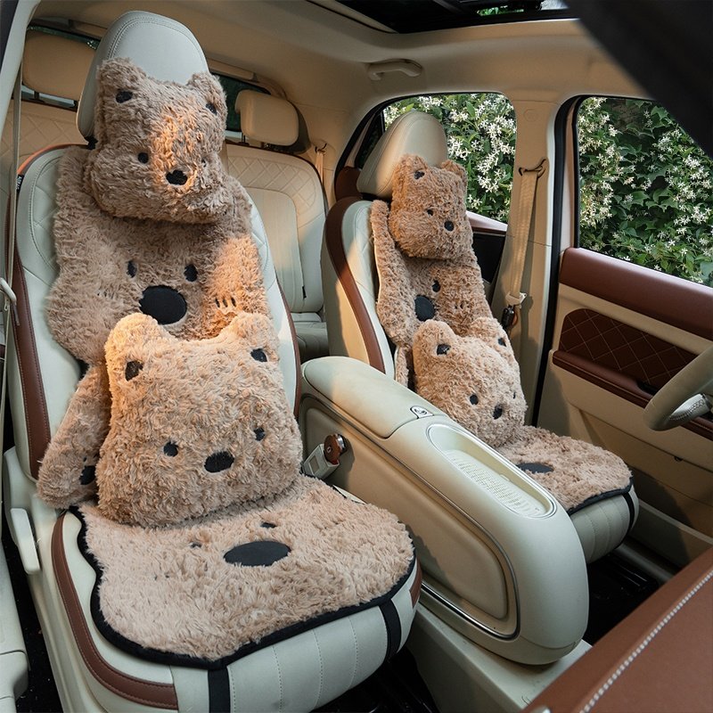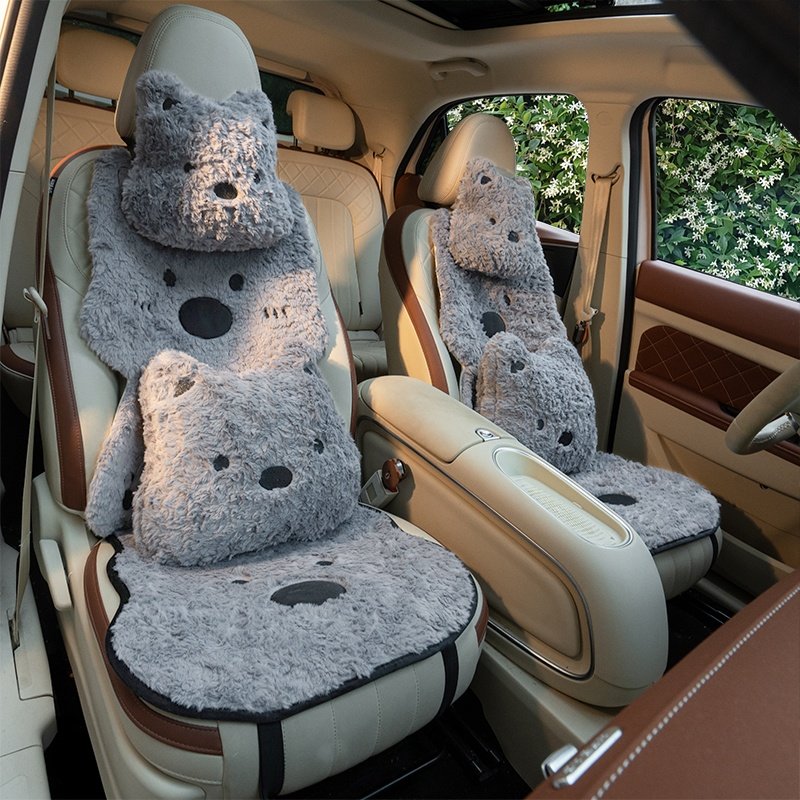 卡通汽车坐垫冬季毛绒加厚保暖车用座椅垫高级感防滑车载坐垫