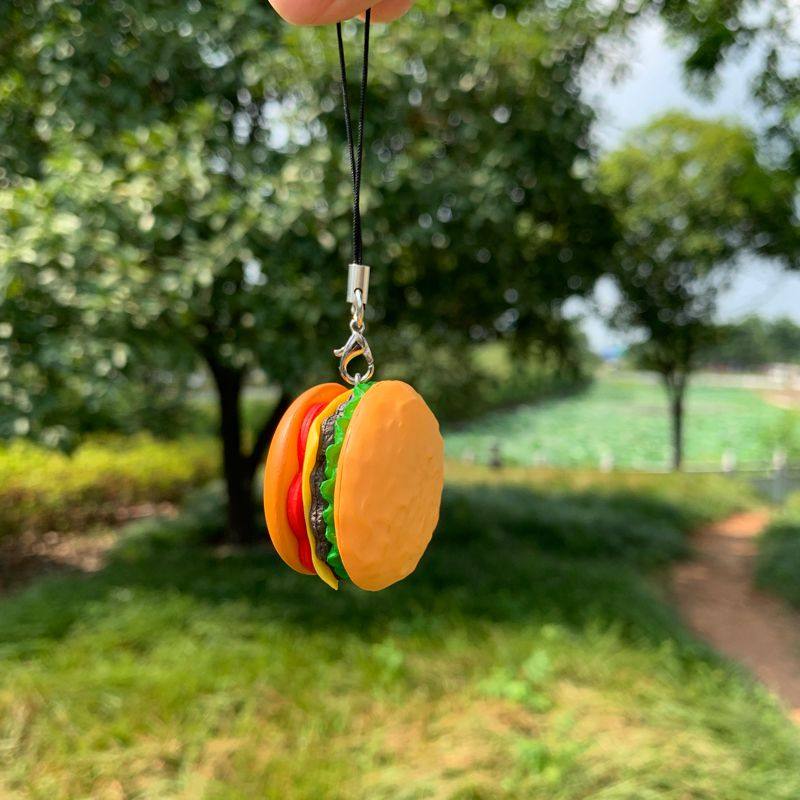STI仿真汉堡堡个性手机挂件挂绳手机链吊坠女精致书包包小挂饰品