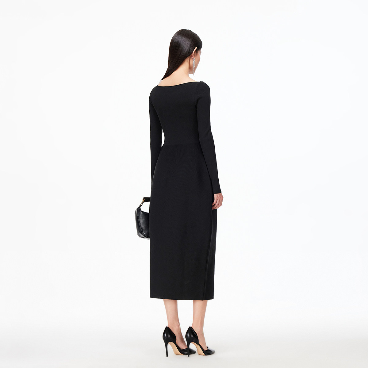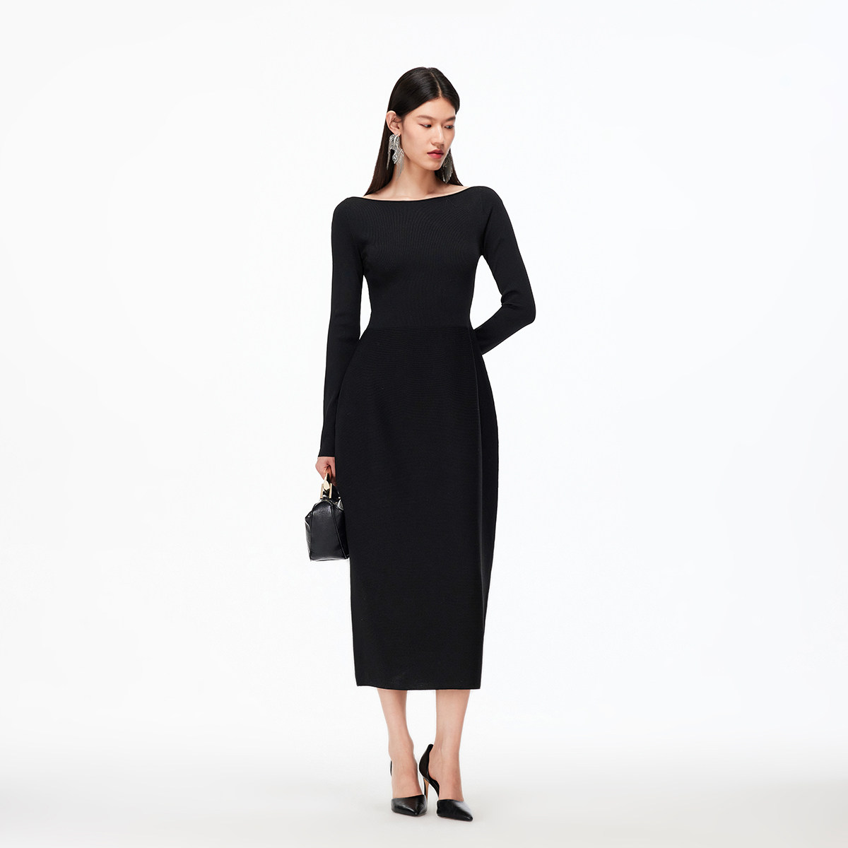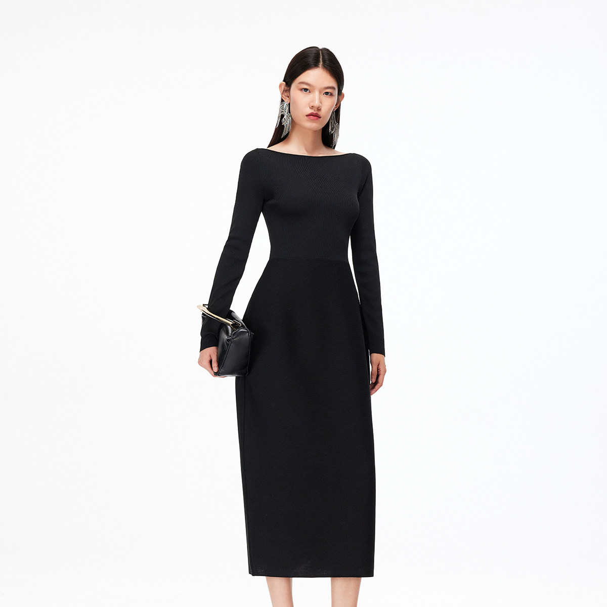 COCOBELLA简约气质黑色收腰极简风连衣裙女优雅短袖长裙FR3033-2