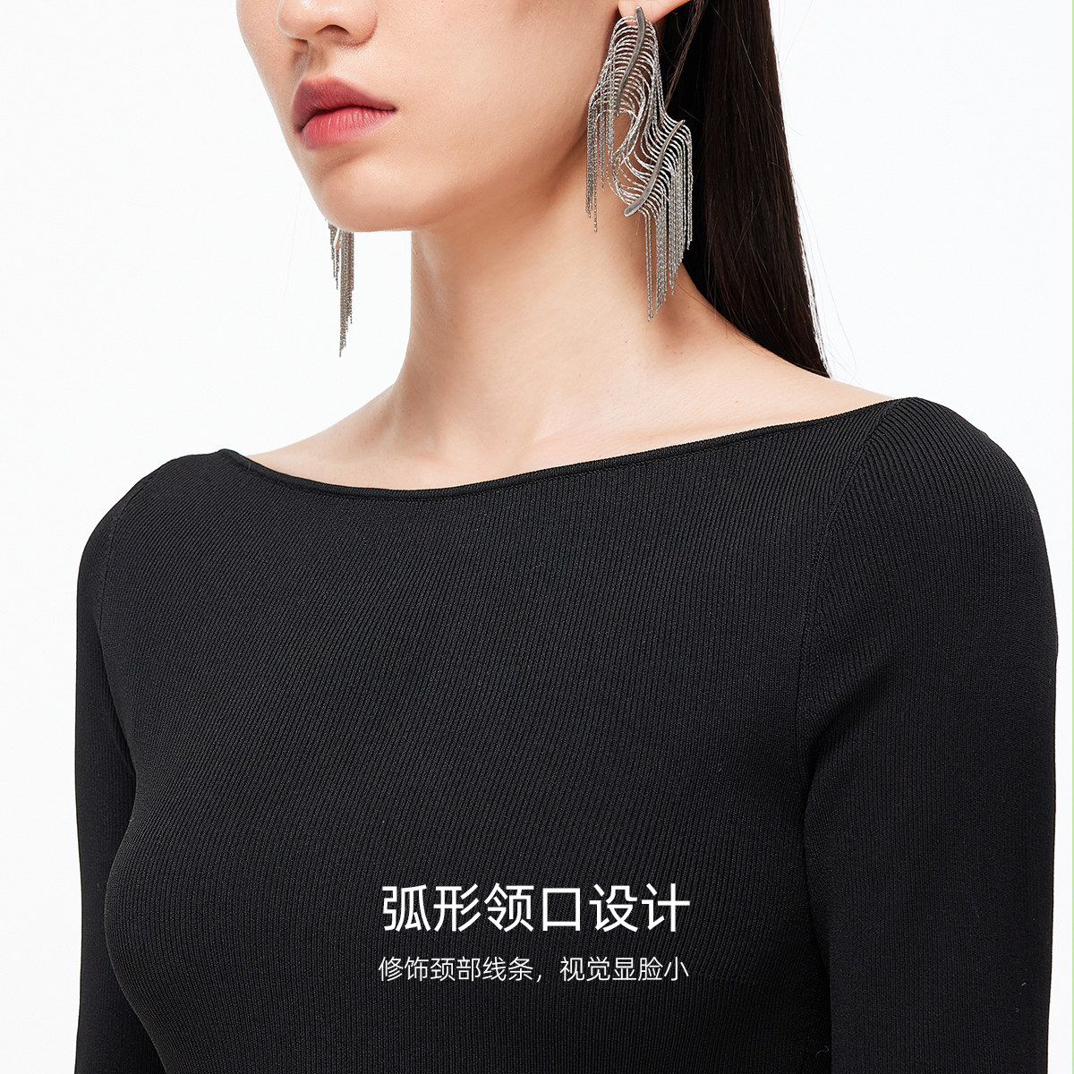 iqcq气球熊时尚辣妹套装秋季抹胸连衣裙女收腰一字肩黑色蓬蓬裙子
