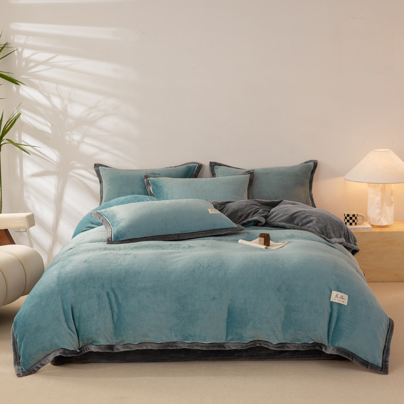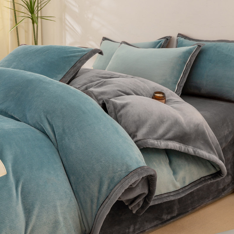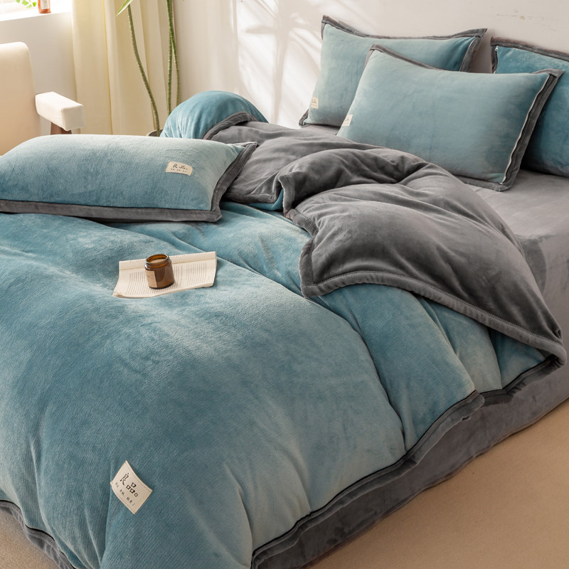 冬季加绒被套单件牛奶绒珊瑚绒宿舍单人单独毛绒被罩1.5米四件套3
