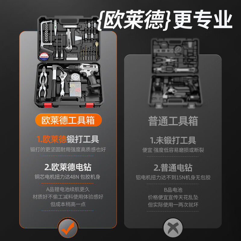 手电钻锂电电钻家用组合工具箱套装维修套装电动螺丝刀五金无刷
