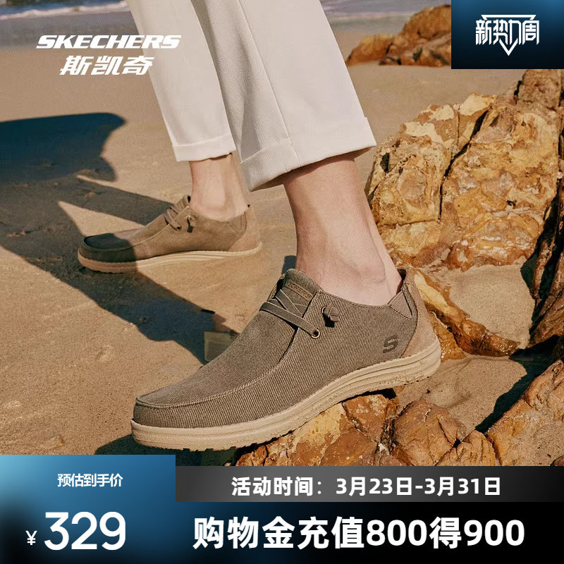 斯凯奇男鞋帆布鞋软底减震通勤鞋子轻便舒适休闲板鞋子时尚百搭