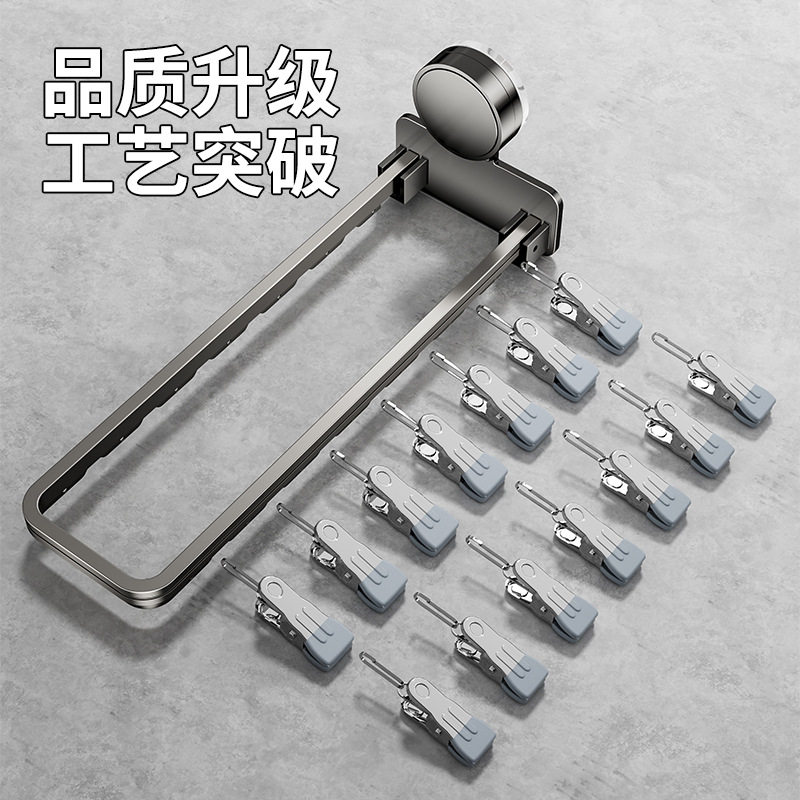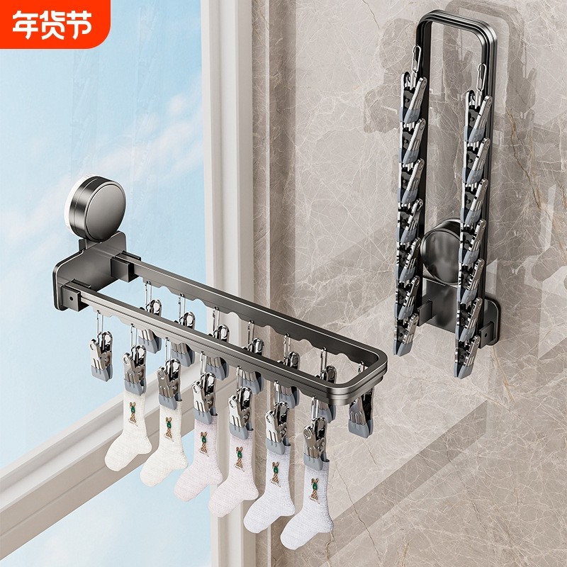折叠吸盘晾衣架多夹子家用阳台免打孔壁挂内衣裤袜子夹晾晒架神器