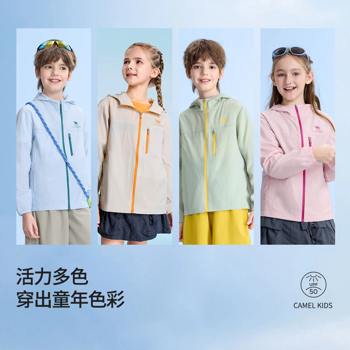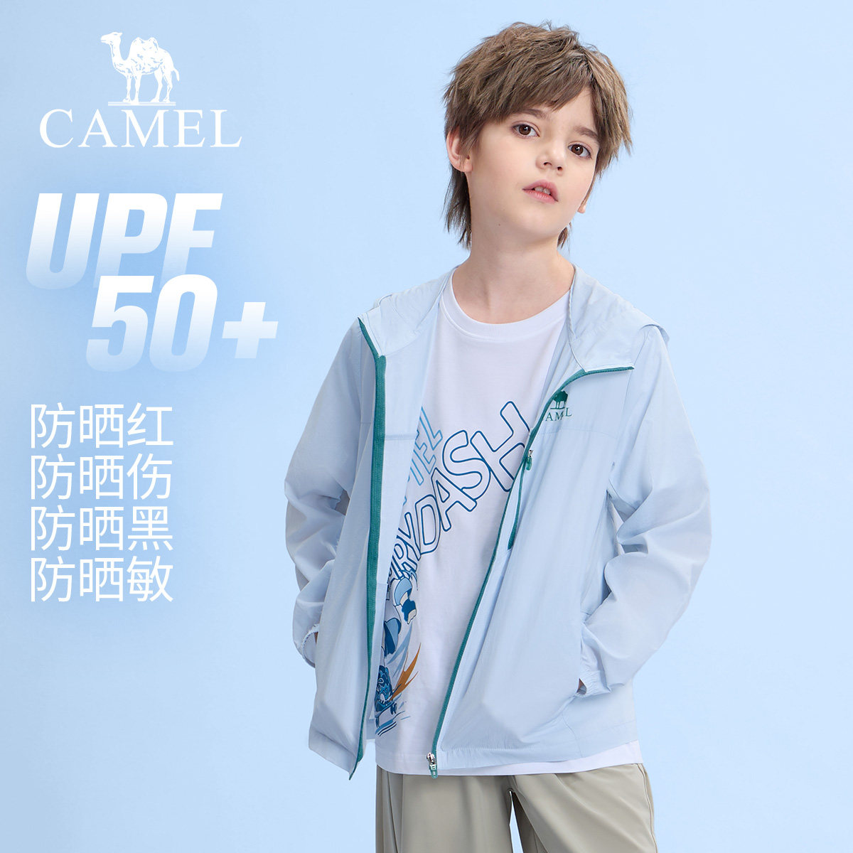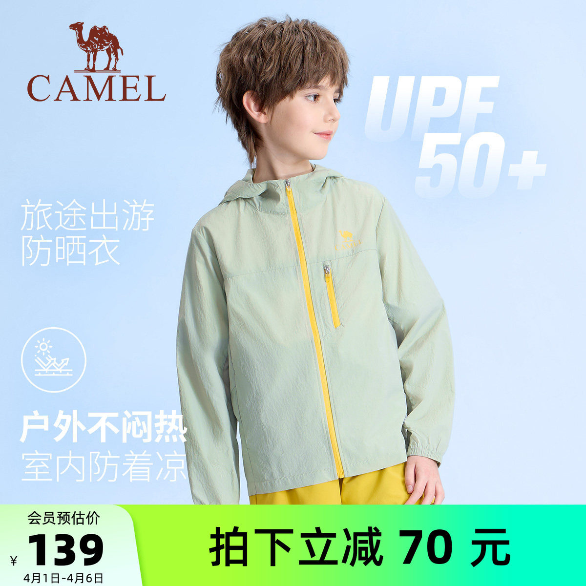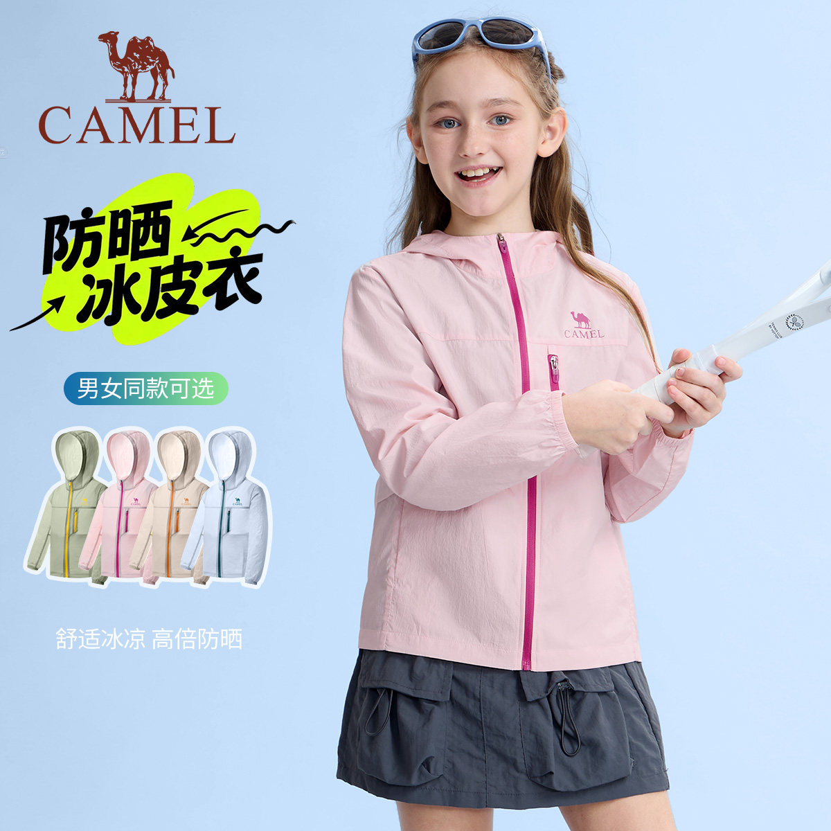 【晴雨伞】骆驼儿童防晒衣轻薄冰感连帽拉链透气外套男女童冰皮衣