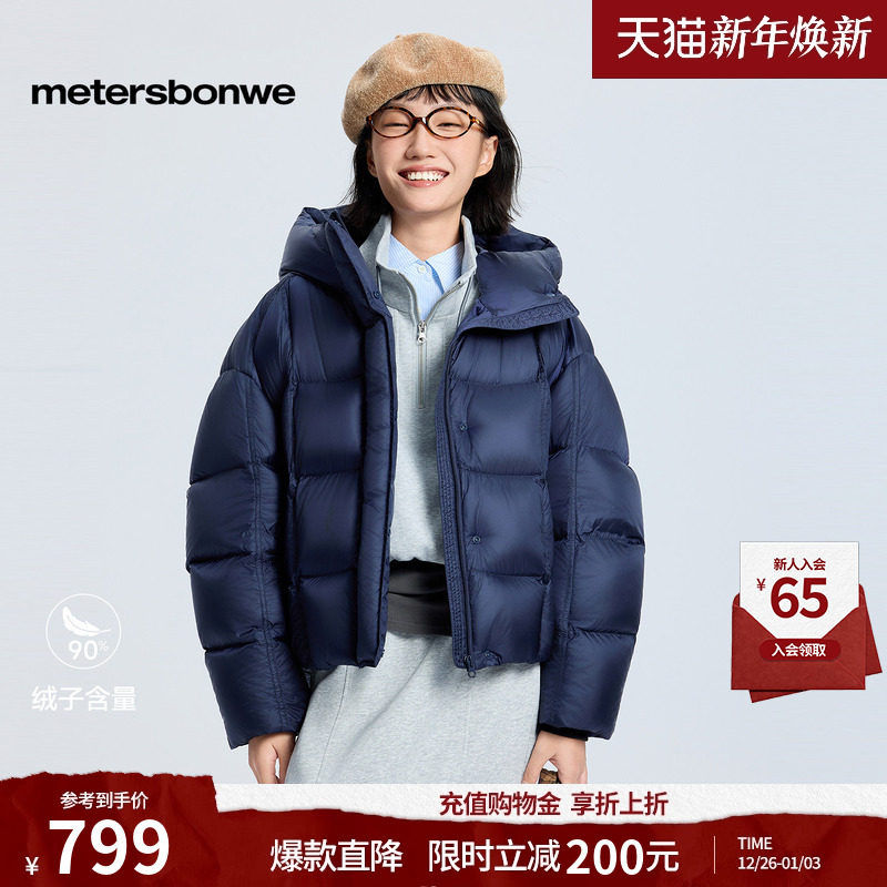 美特斯邦威羽绒服女2025冬季新款潮流连帽龟背廓型舒适保暖棉服