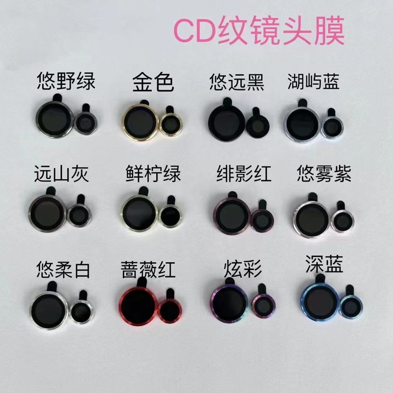 适用 Iphone 16ProMax 15Plus 苹果14Promax 13 12mini,11 CD纹闪粉金属镜头膜炫彩色手机保护贴膜工厂批,发