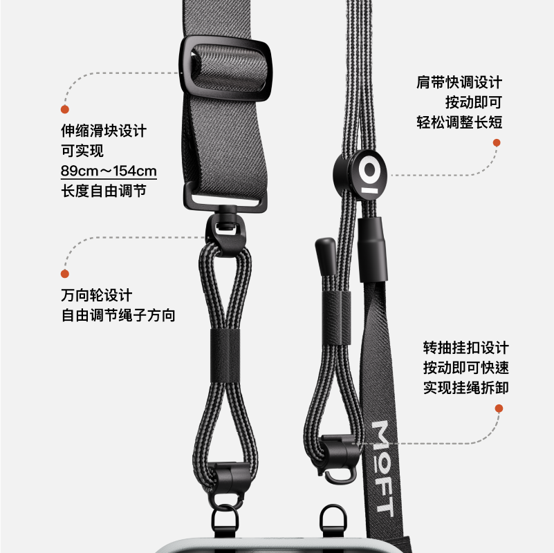 MOFT手机壳挂绳拍照便携iphone17Pro Max露营徒步多功能可拆卸调节防丢背带斜跨挂脖手机链配饰背带舒适通用