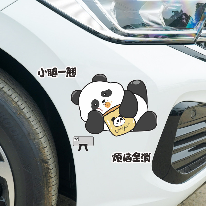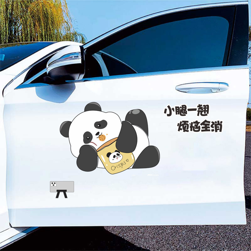 汽车贴纸卡通熊猫车贴划痕遮挡遮盖防水车身个性创意贴画电动车贴