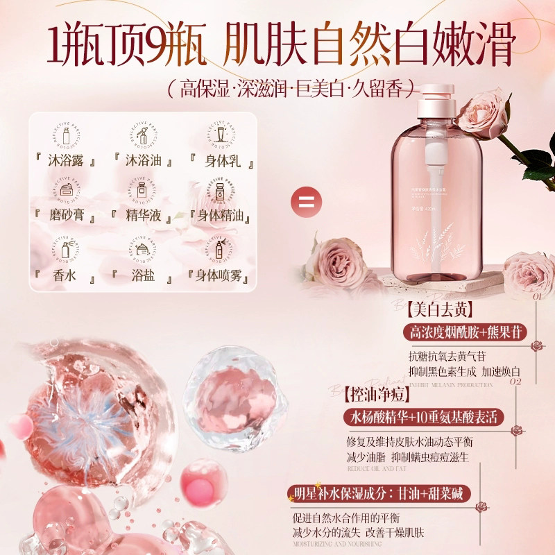 Reze烟酰胺沐浴露水蜜桃沐浴乳明星孟子义同款果酸角质清洁307ml
