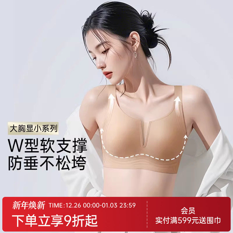 润微提拉女王内衣女大胸显小无痕大码调整防下垂收副乳粉底液文胸