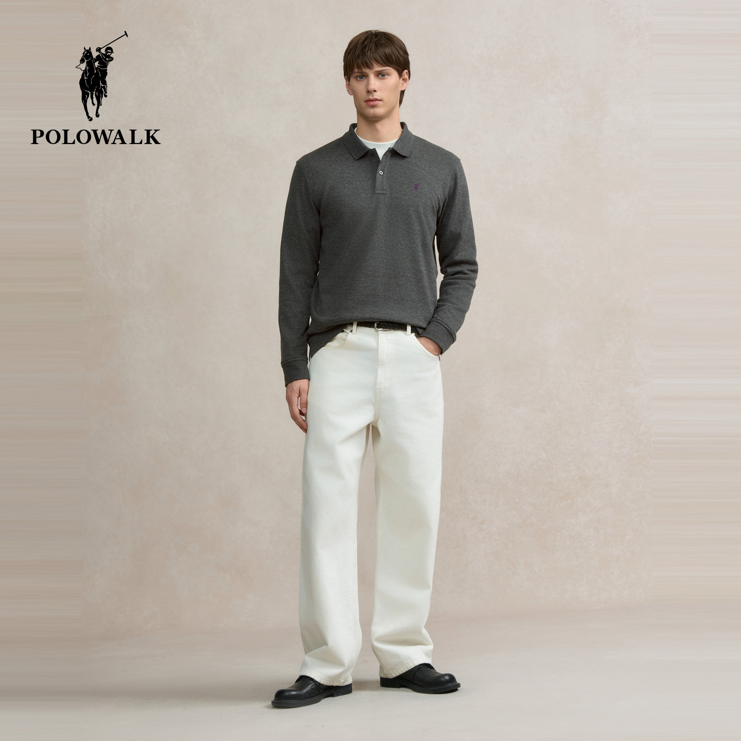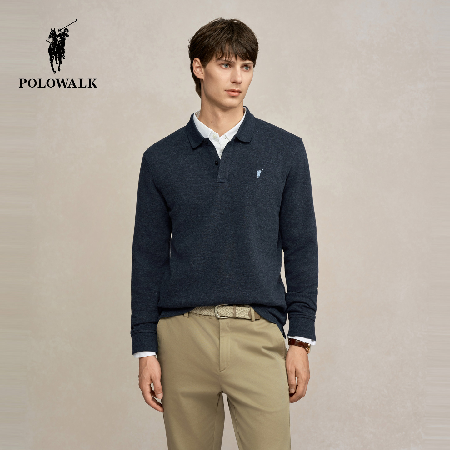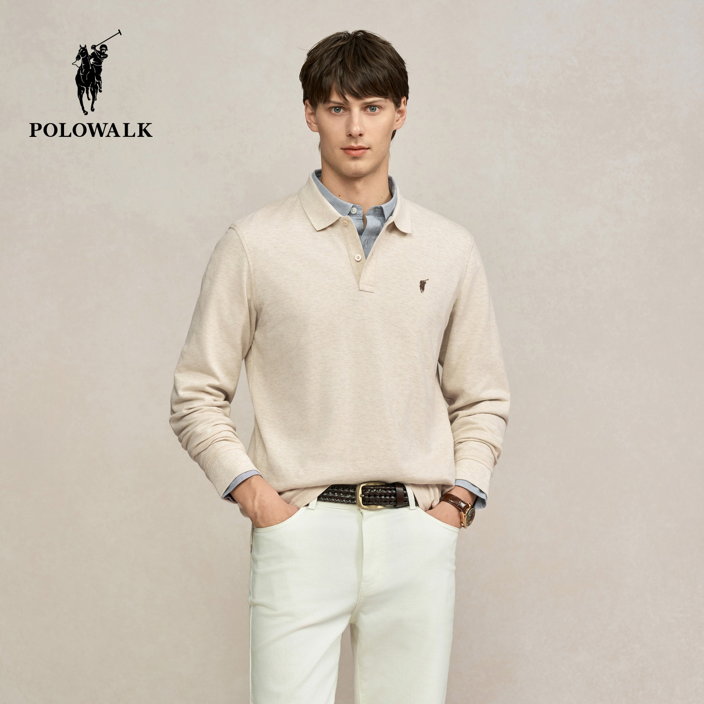 POLOWALK男式长袖T恤2025秋季新品商务休闲通勤翻领百搭男装上衣