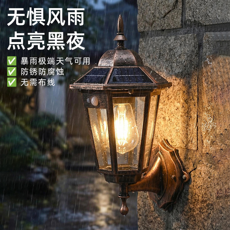 太阳能户外灯家用庭院灯2025新款照明灯人体感应室外防水院子壁灯