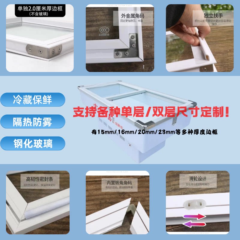 冰柜冷柜展示柜玻璃盖弧形玻璃推拉门定制雪柜展柜点菜柜玻璃门