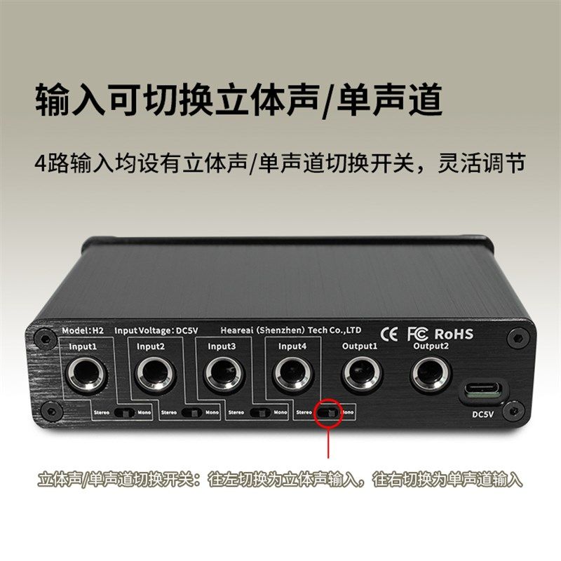 4进2出混音器6.5端口单双声道吉他乐队管乐混响合成效果分配器4路