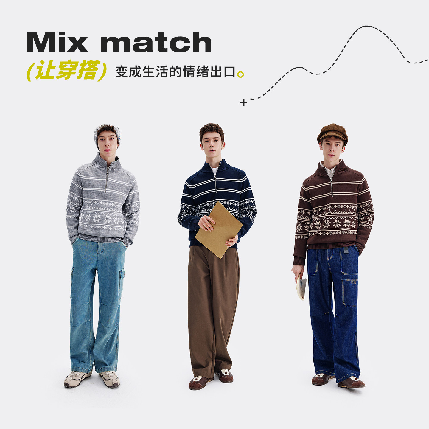 【入会立减20】CANOTWAIT 陈伟霆蜡笔提花毛衣开衫男女外套针织衫