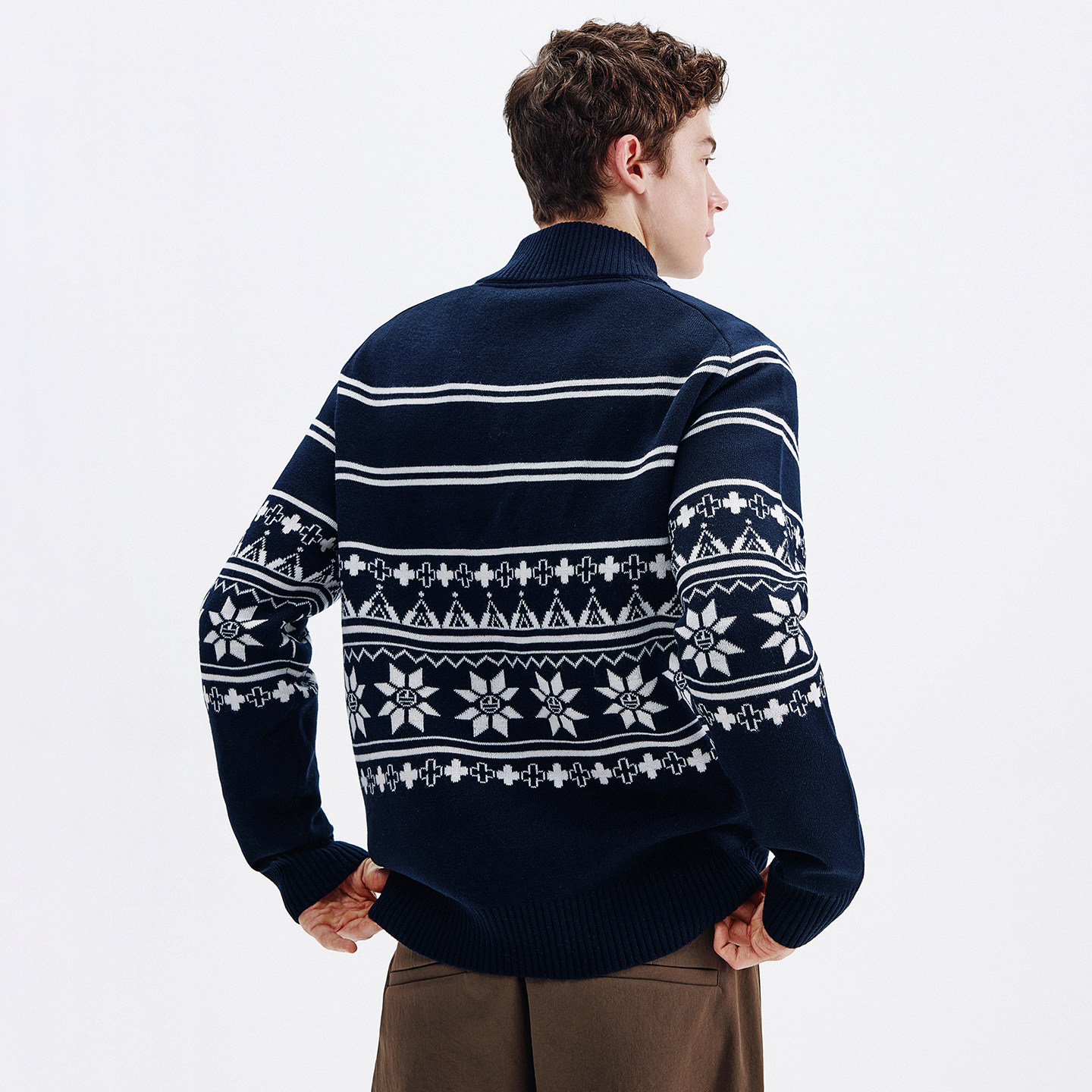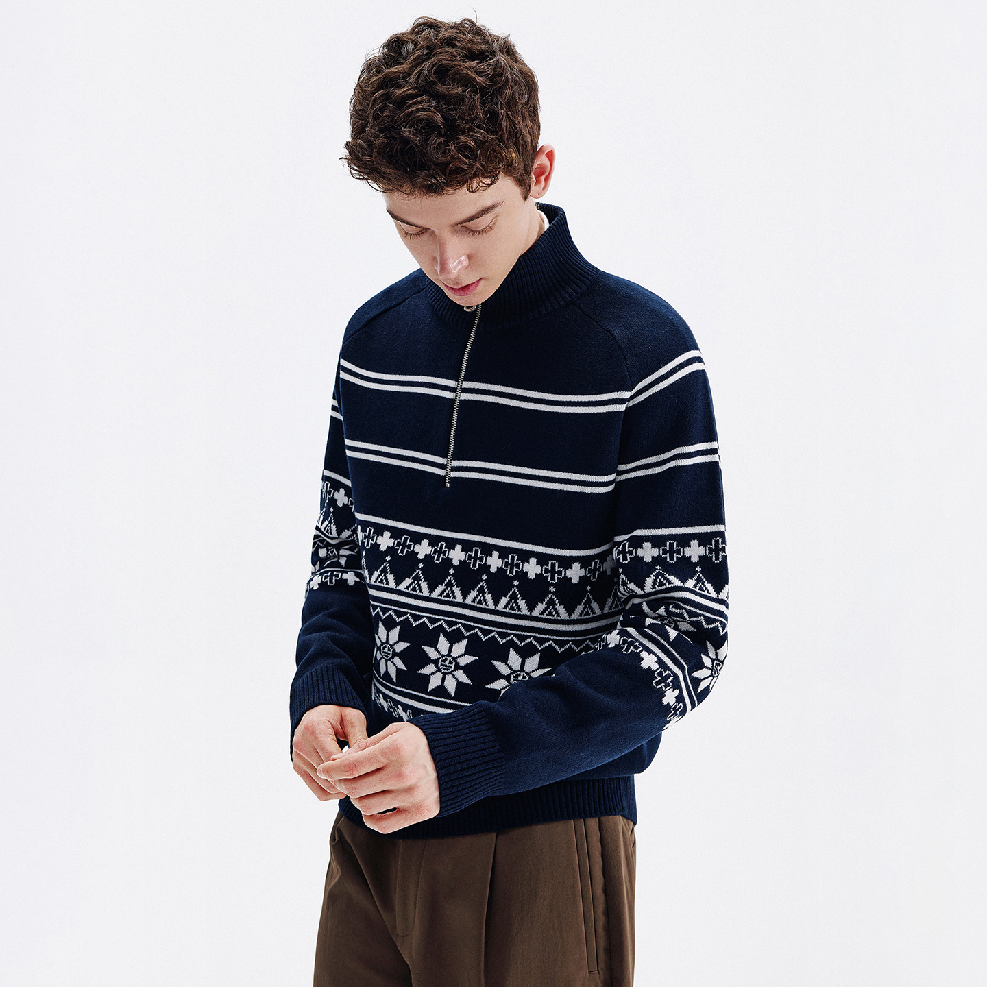 Navigare意大利小帆船潮流半开领羊毛针织衫男士秋冬新款提花毛衣