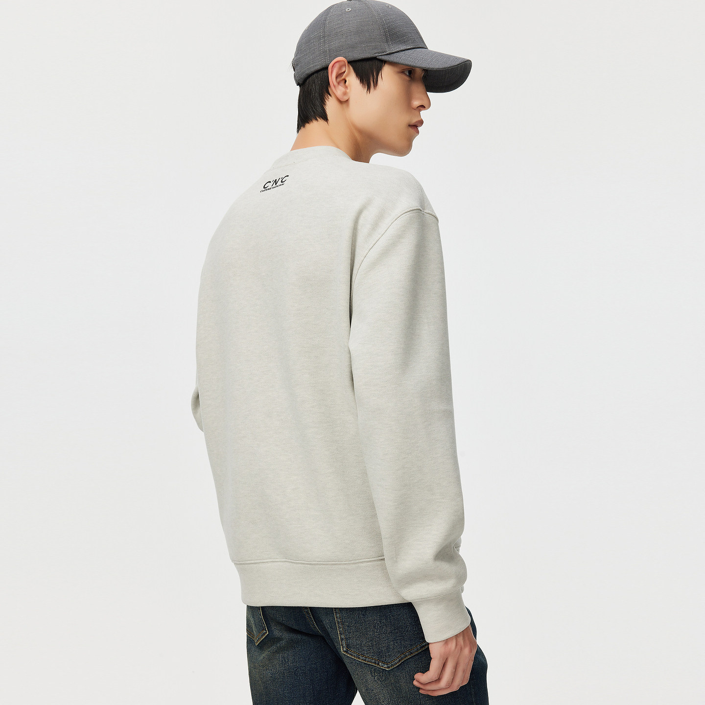 CNC男装秋冬新款轻奢薄绒男长袖圆领卫衣大logo印花保暖加厚卫衣