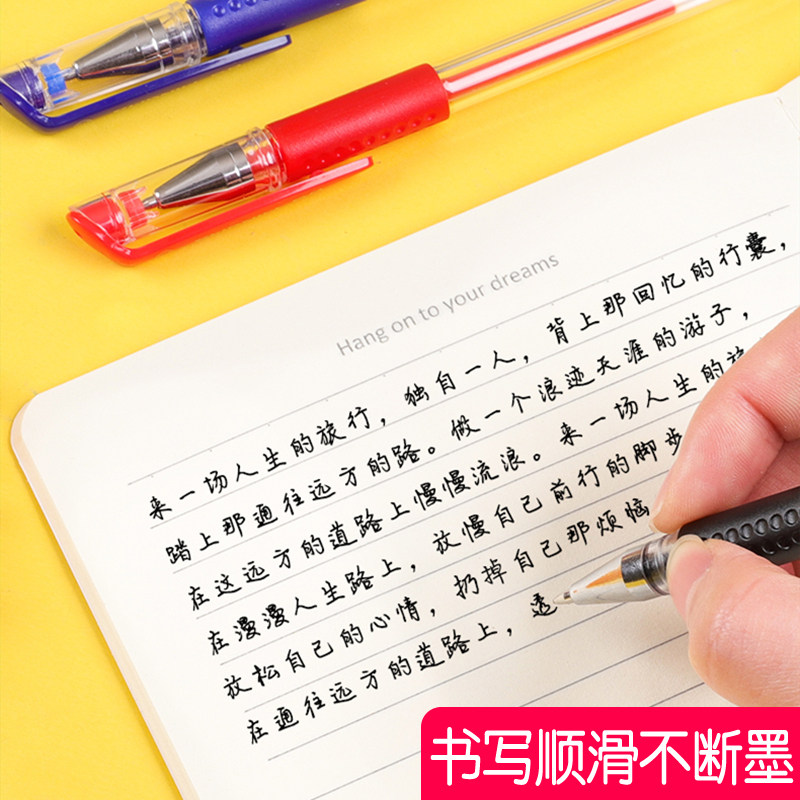 晨光中性笔按动式黑色水笔红色蓝色速干顺滑大容量学生用碳素笔