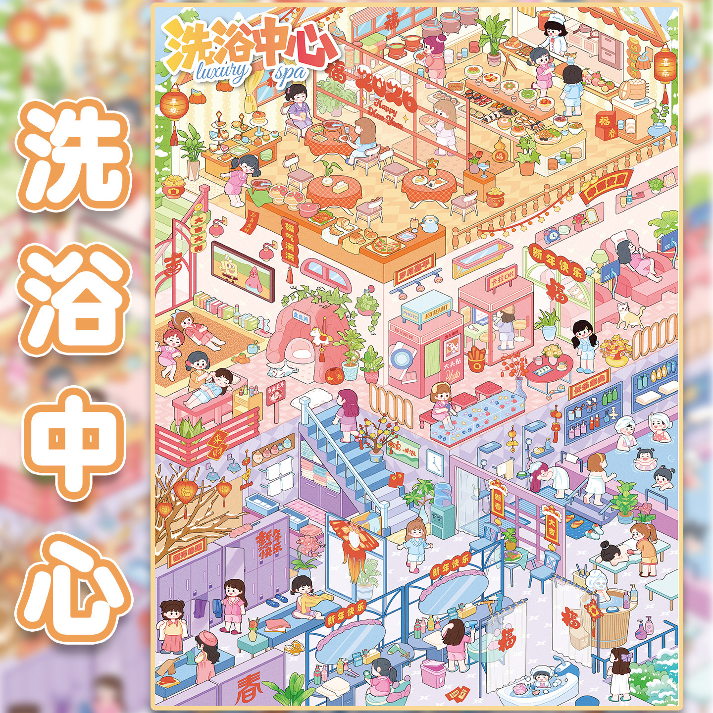 洗浴中心造景贴纸艺蓝132.0新年系列节日主题大号高难度微缩场景3D立体小屋贴画手工解压玩具女孩新年礼物
