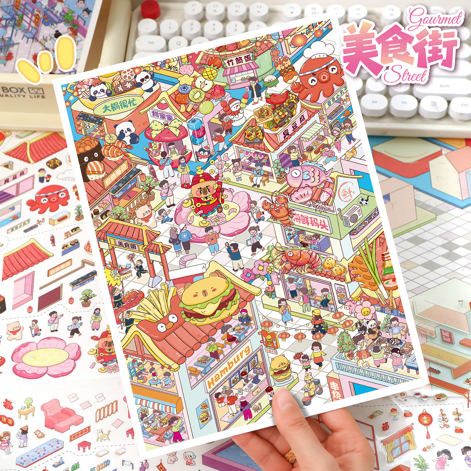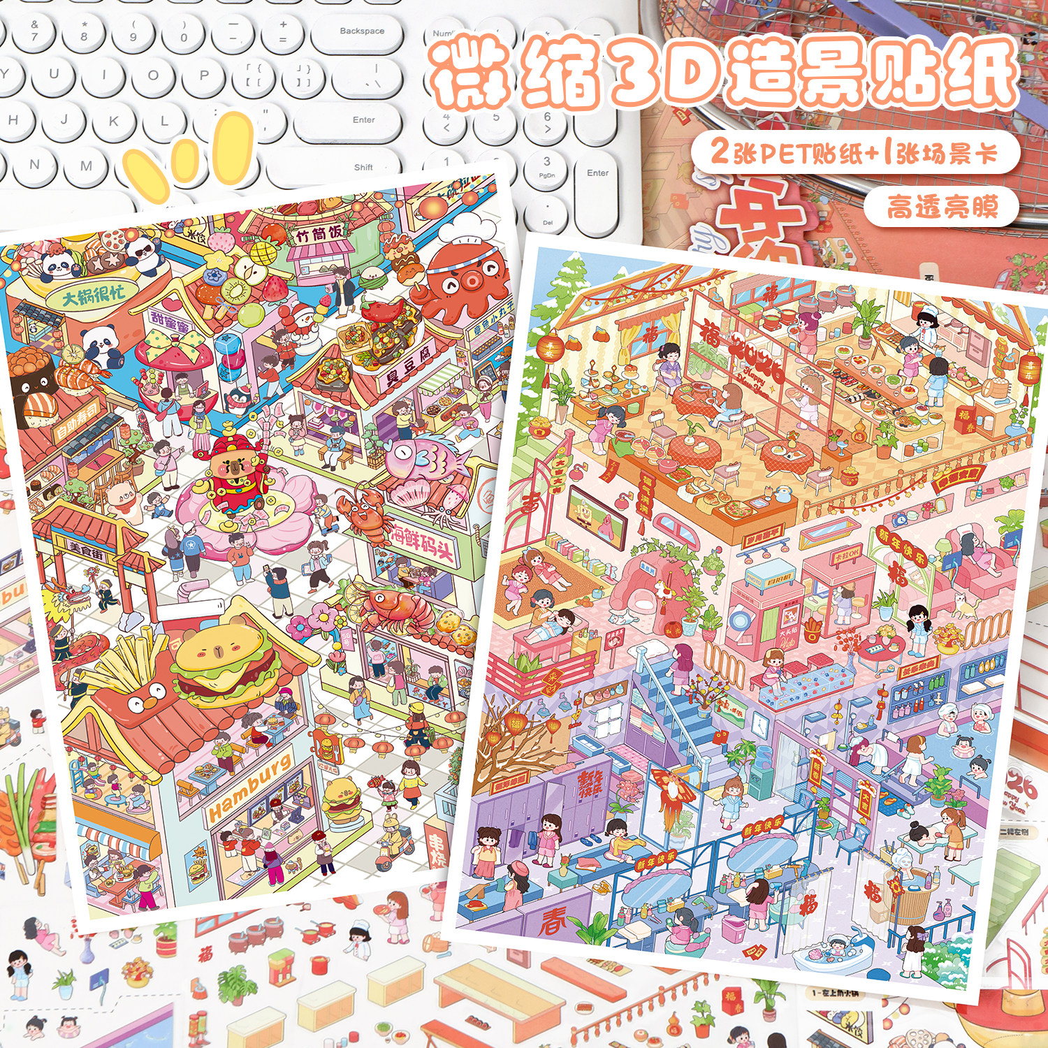 新款筑梦3d立体造景贴纸微缩场景合集本 大号版diy手工小屋手账贴儿童益智玩具素材贴画解压大版3D手账装饰贴