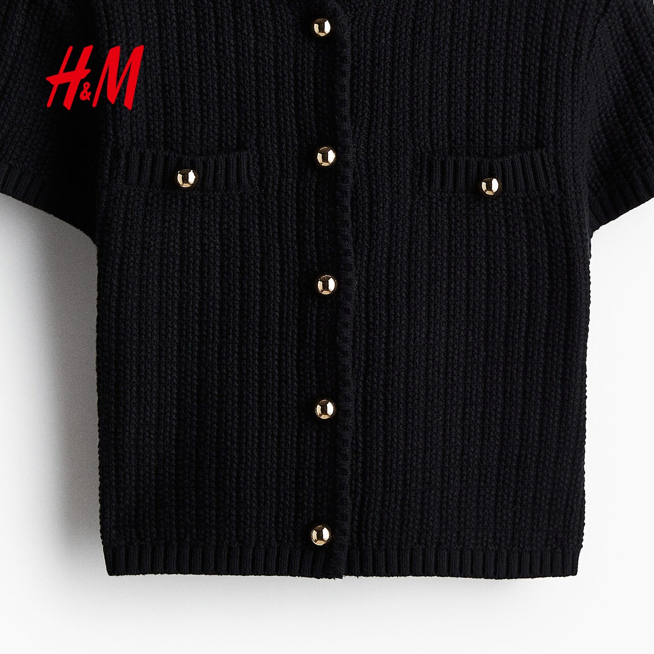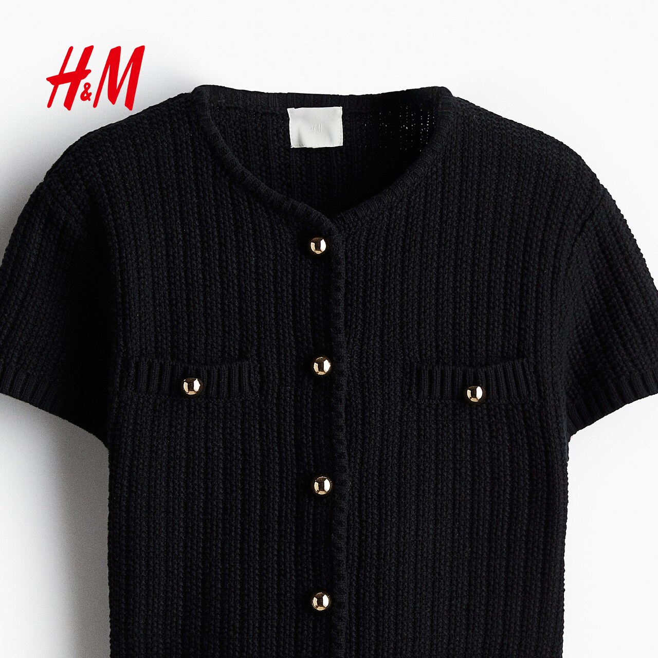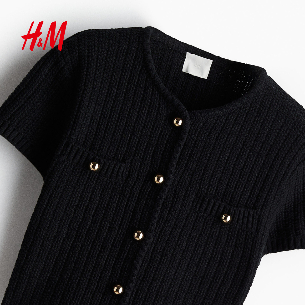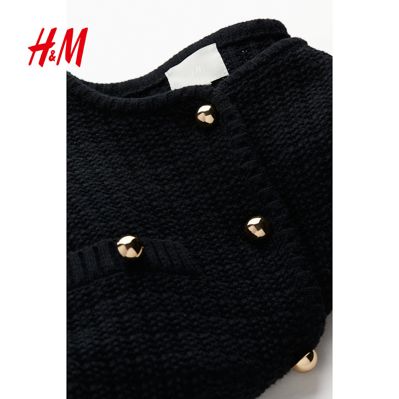 HM女装针织衫春季圆领精致简约单排扣挺括针织miu系开衫1229075