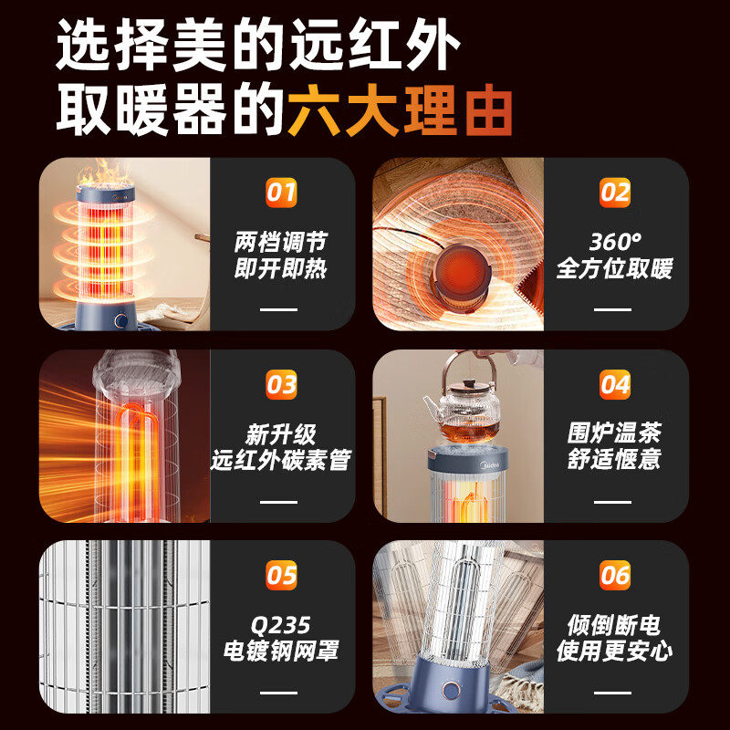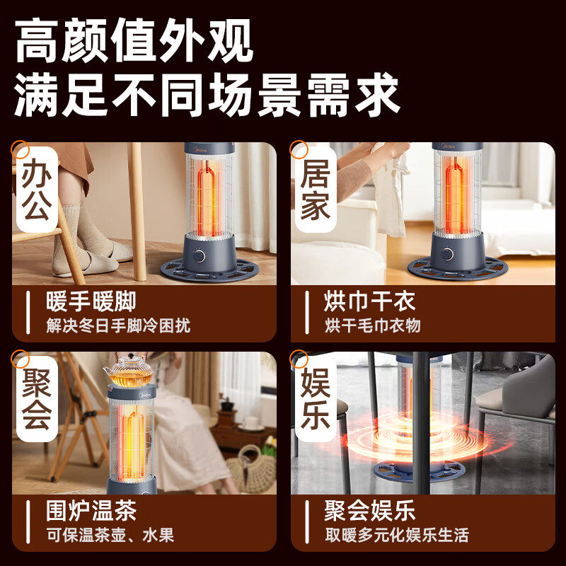 美的鸟笼取暖器家用节能小太阳办公室围炉桌下电暖器气速热烤火炉