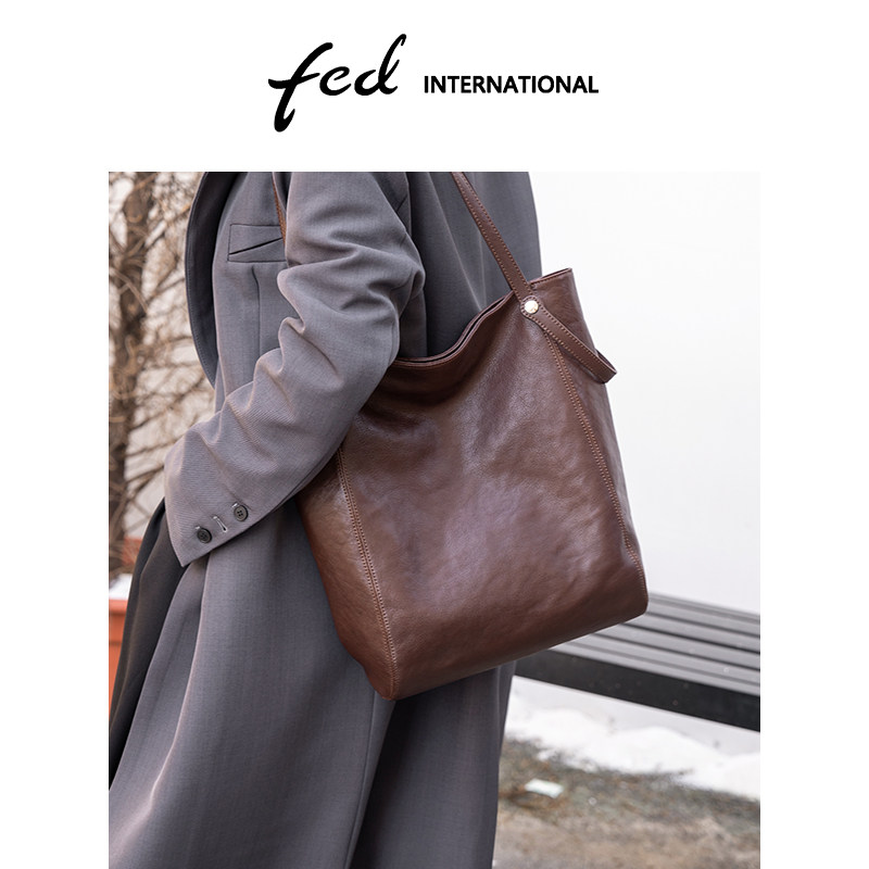 fed植鞣头层牛皮托特包大容量HOBO单肩手提包妈咪包女真皮BFA9090